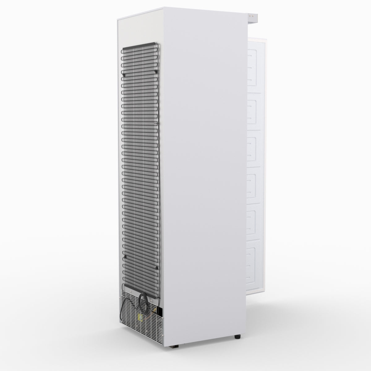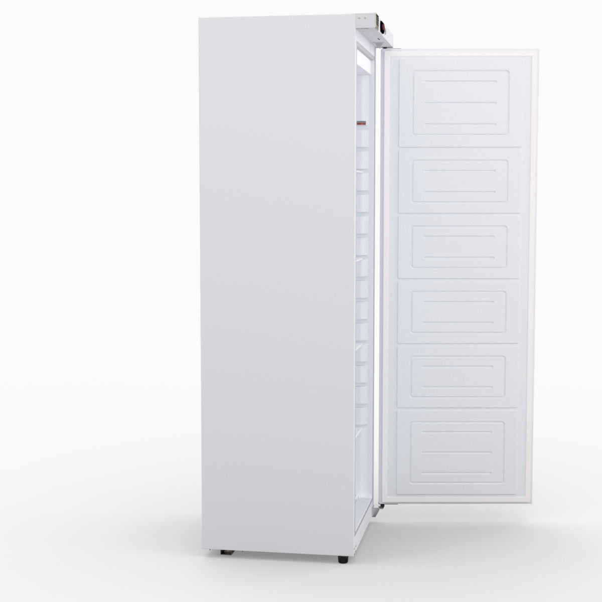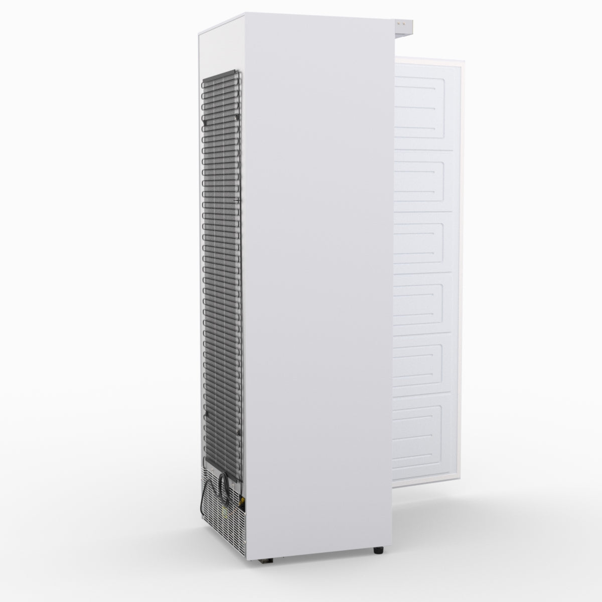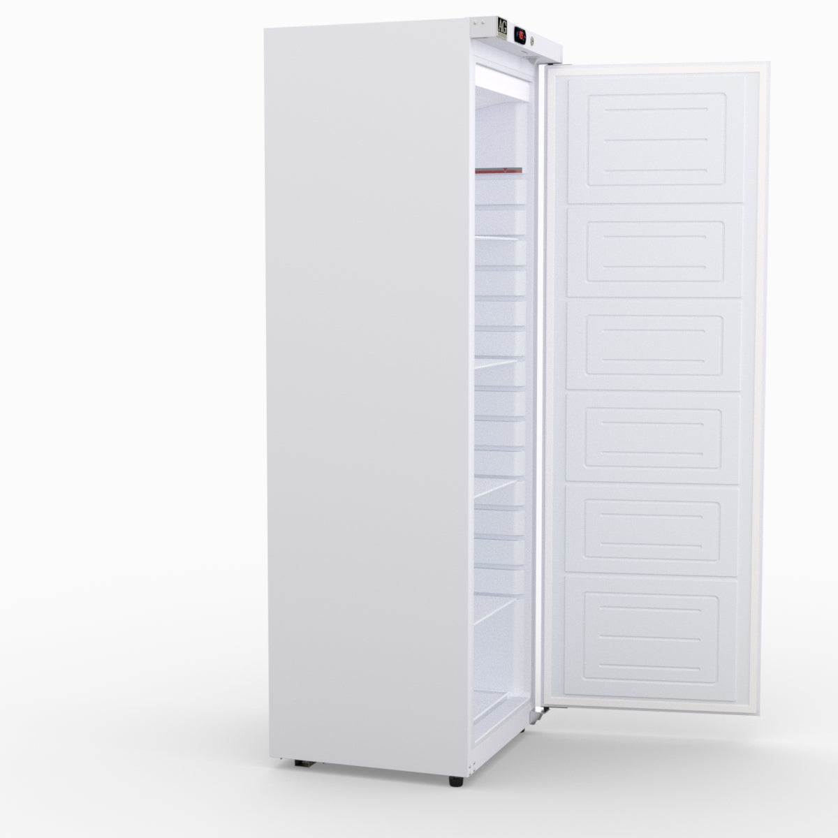 The upright freezer is specifically engineered for light-duty storage-centric solutions at bustling cafés, kiosks, food vans, and sandwich bars. Featuring a single door and a space-efficient design, it provides a storage capacity of 293 litres. Its durable construction ensures reliability and space-saving size. The freezer is equipped with fan-forced ventilated cooling and electronic temperature controls, ensuring optimal performance and consistent refrigeration.