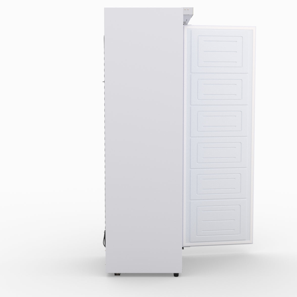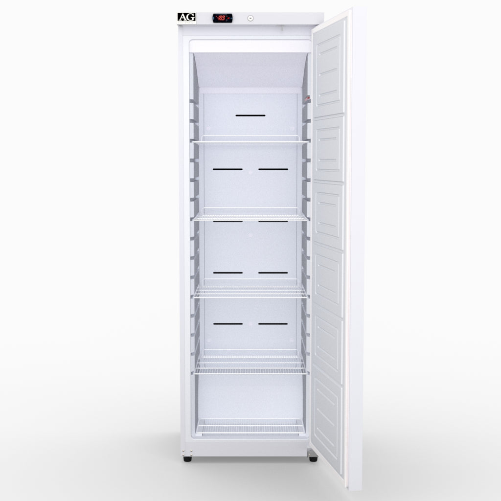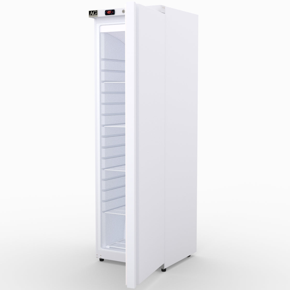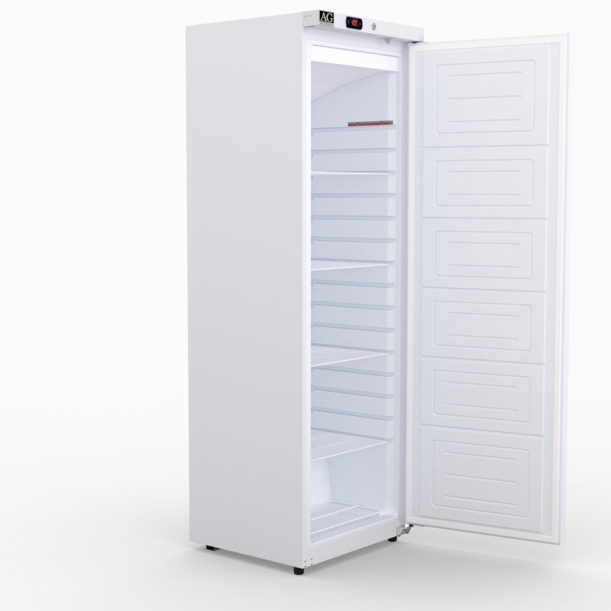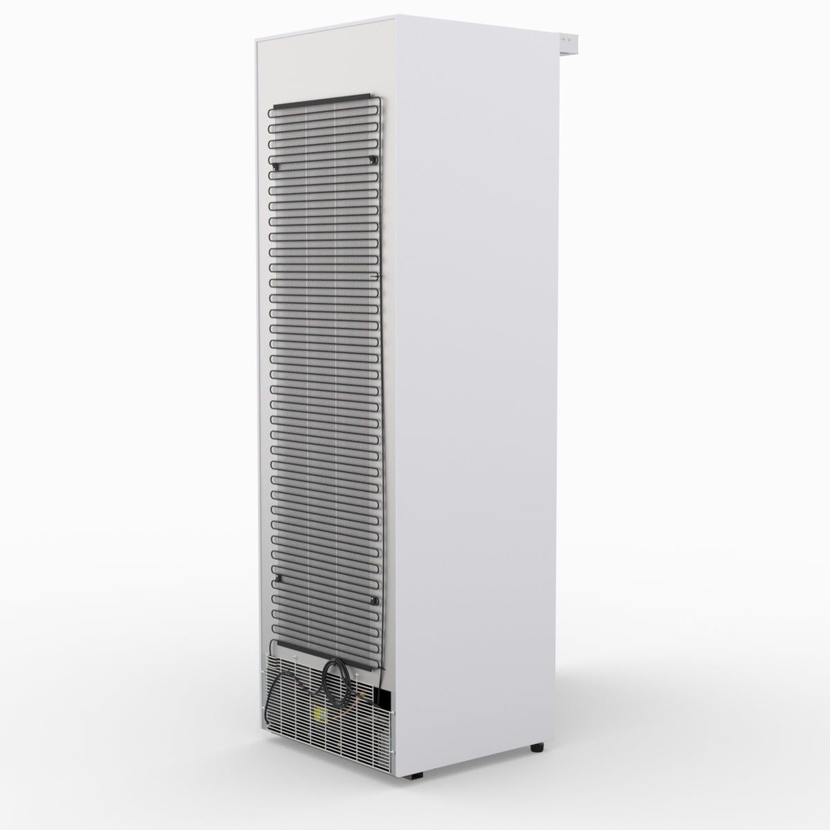 The upright freezer is specifically engineered for light-duty storage-centric solutions at bustling cafés, kiosks, food vans, and sandwich bars. Featuring a single door and a space-efficient design, it provides a storage capacity of 293 litres. Its durable construction ensures reliability and space-saving size. The freezer is equipped with fan-forced ventilated cooling and electronic temperature controls, ensuring optimal performance and consistent refrigeration.