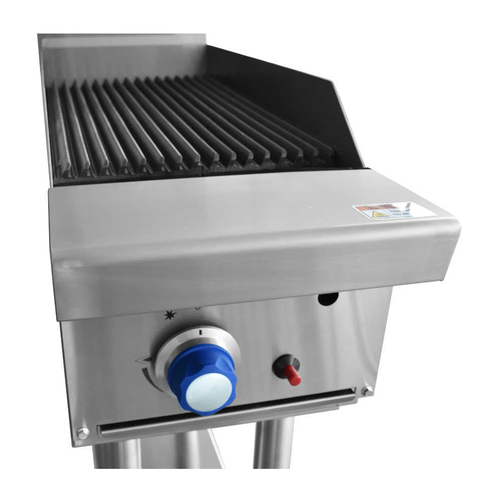 Upgrade your kitchen with the CookRite Single Burner Commercial Radiant Chargrill - 300MM width. Crafted with precision using top-grade stainless steel and equipped with flame-out valves, this powerhouse of a chargrill is built to last. Say goodbye to uneven grilling as the cast-iron cooking plates ensure consistent heating for perfectly grilled masterpieces every time. With adjustable feet, a generous splashback, and a removable drip tray, maintenance is a breeze. Elevate your culinary game and bring the sizzle to your establishment with CookRite - the ultimate choice for professional grilling.