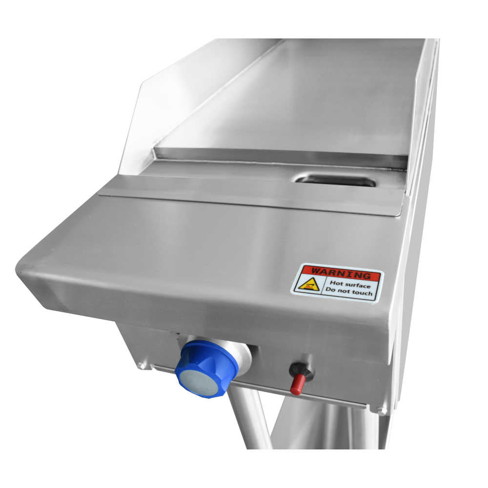 The CookRite hotplate griddle is designed with adjustable feet for easy benchtop placement. Made from type 304 stainless steel with heavy-duty 16 mm cooking plates and operated with flame-out protection valves, this piece of kitchen equipment is easy to use, maintain and clean.