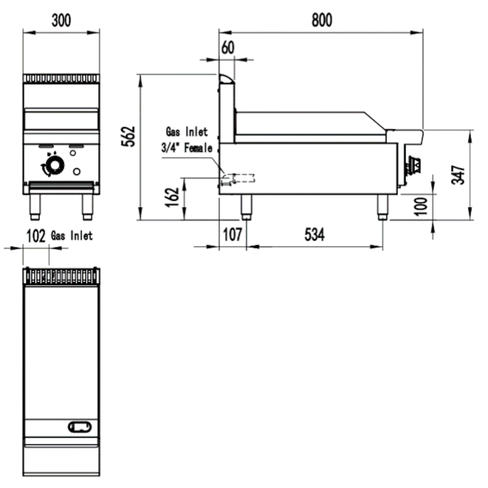 | PRODUCT DIMENSION MM | 300(w) x 800(d) x 562(h) |
