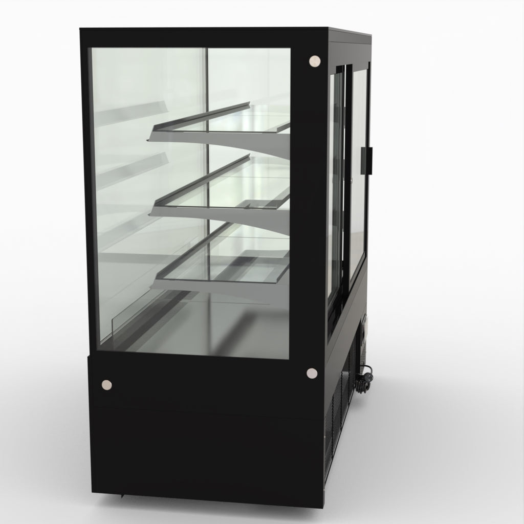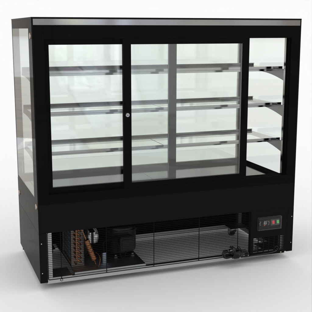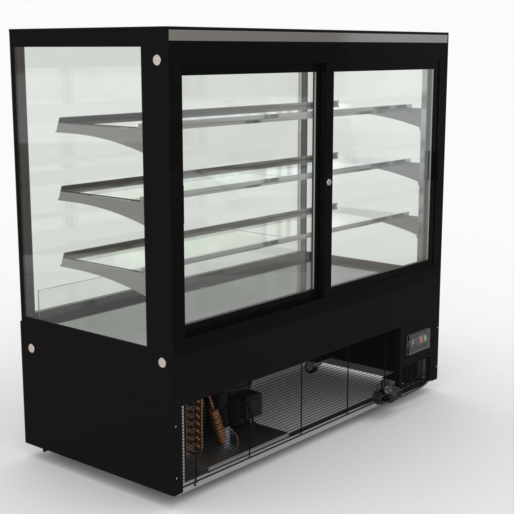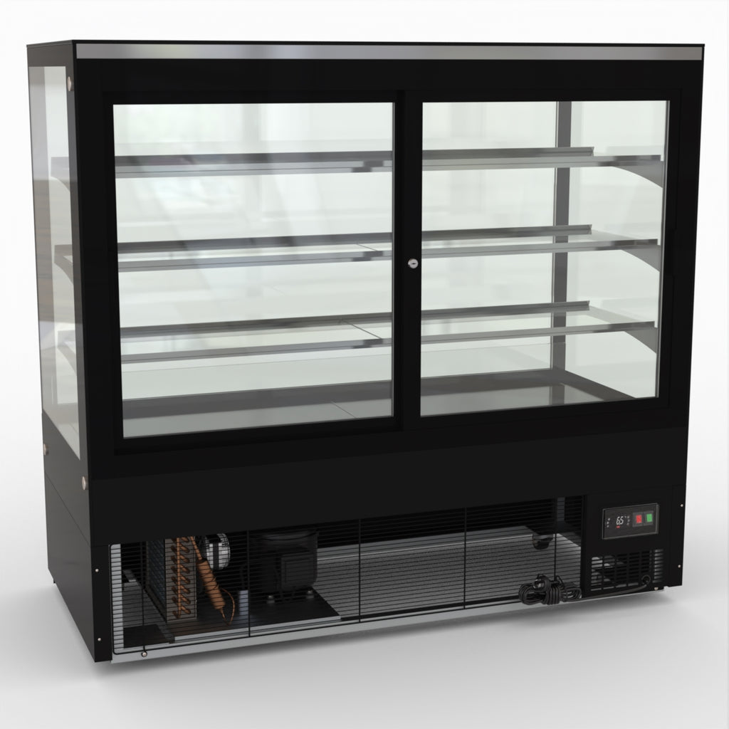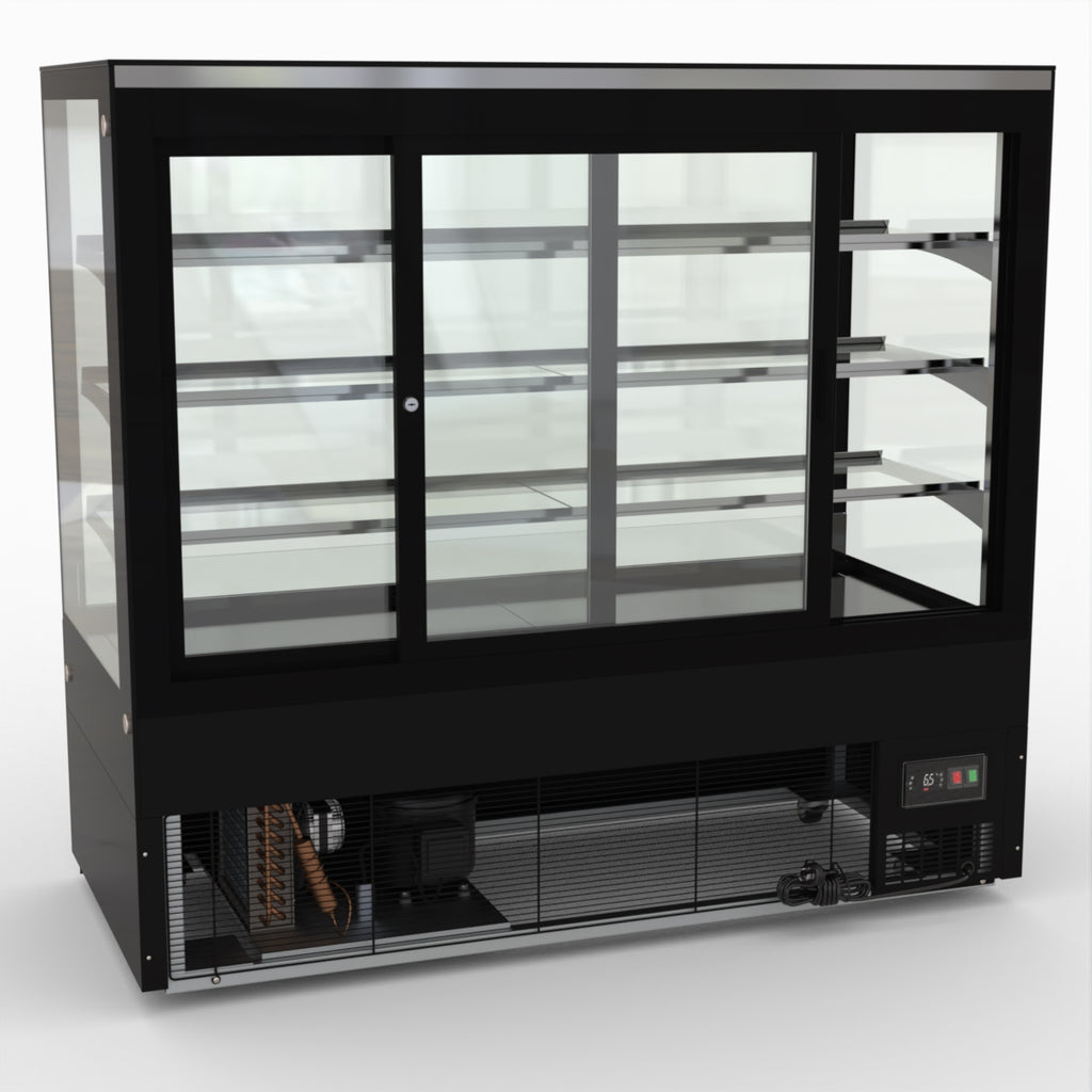 AG Equipment’s 1500mm, 506 Litre black base food display fridge will look great in your cafe, bar, club or restaurant. With four levels of display storage, each individually lit with brilliant LED lighting, and fog-free glass, your food and other refrigerated products will always look their best. With twin rear doors for easy access, and fully adjustable frosted glass shelving our food display will be a convenient and quality addition to your business.