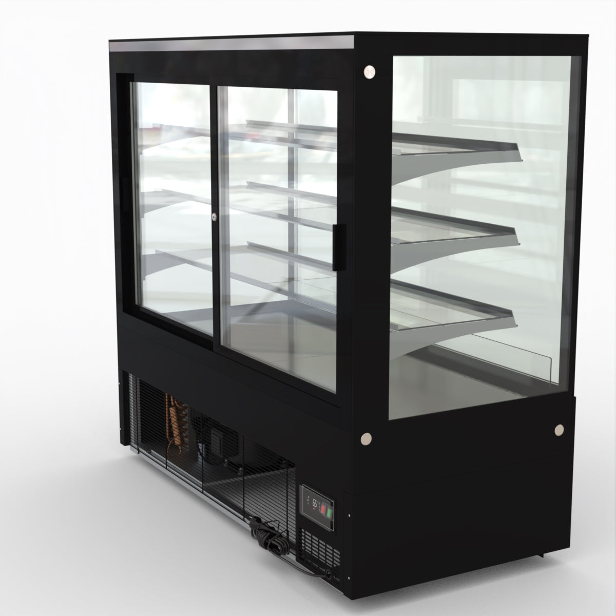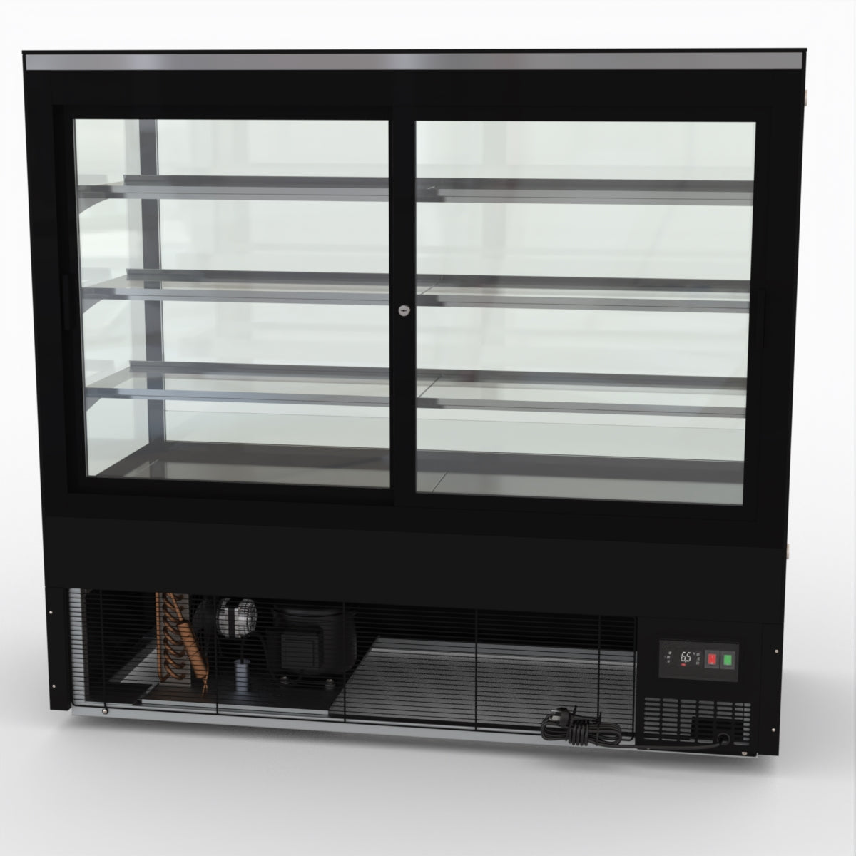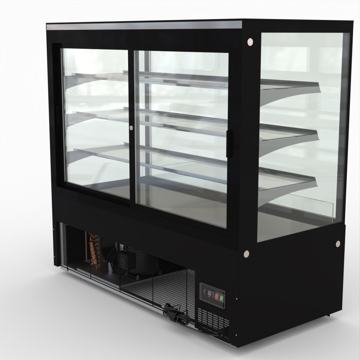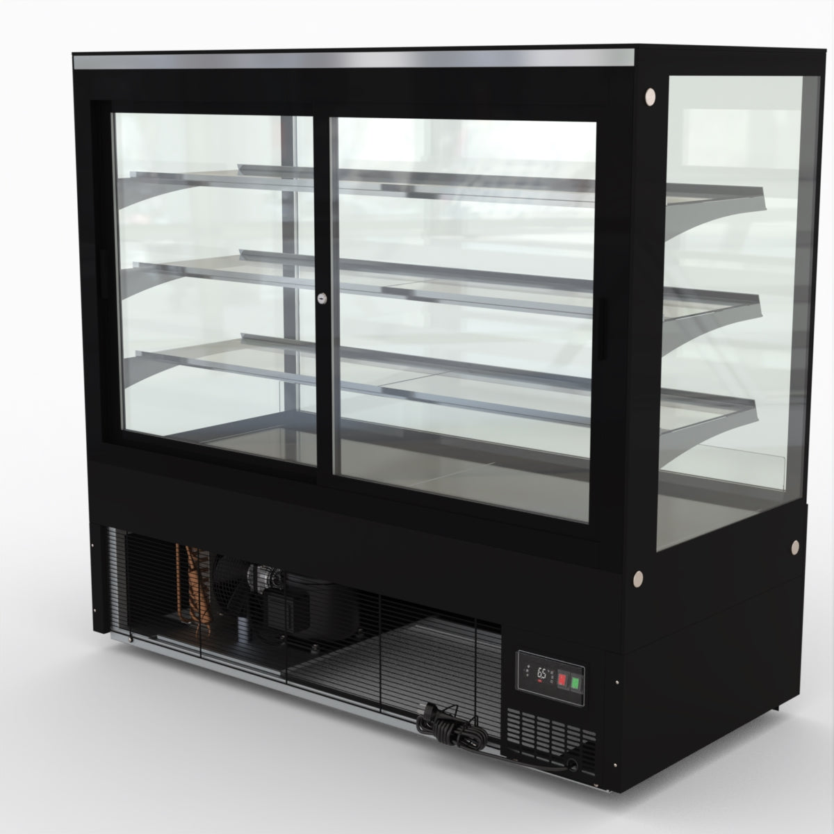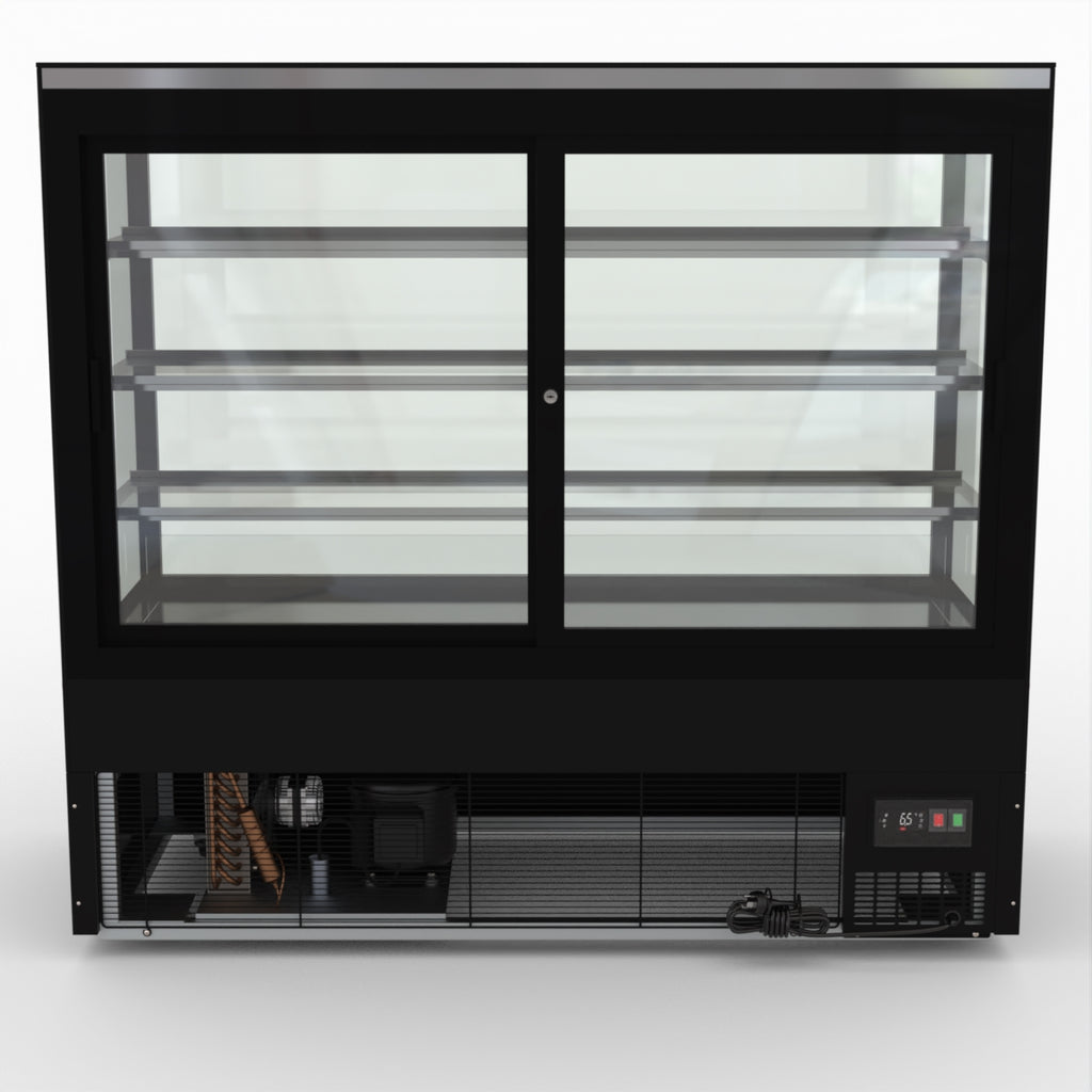 AG Equipment’s 1500mm, 506 Litre black base food display fridge will look great in your cafe, bar, club or restaurant. With four levels of display storage, each individually lit with brilliant LED lighting, and fog-free glass, your food and other refrigerated products will always look their best. With twin rear doors for easy access, and fully adjustable frosted glass shelving our food display will be a convenient and quality addition to your business.