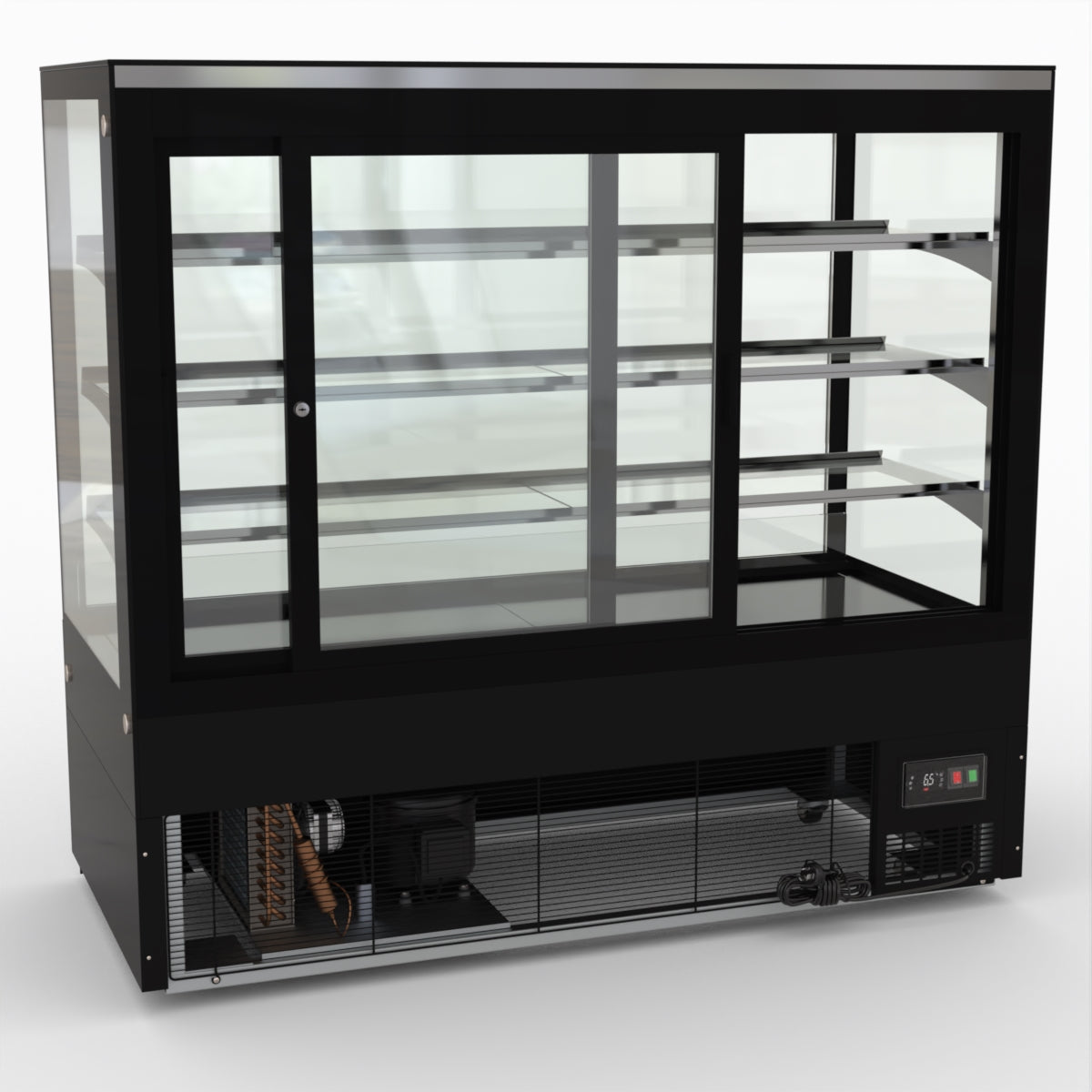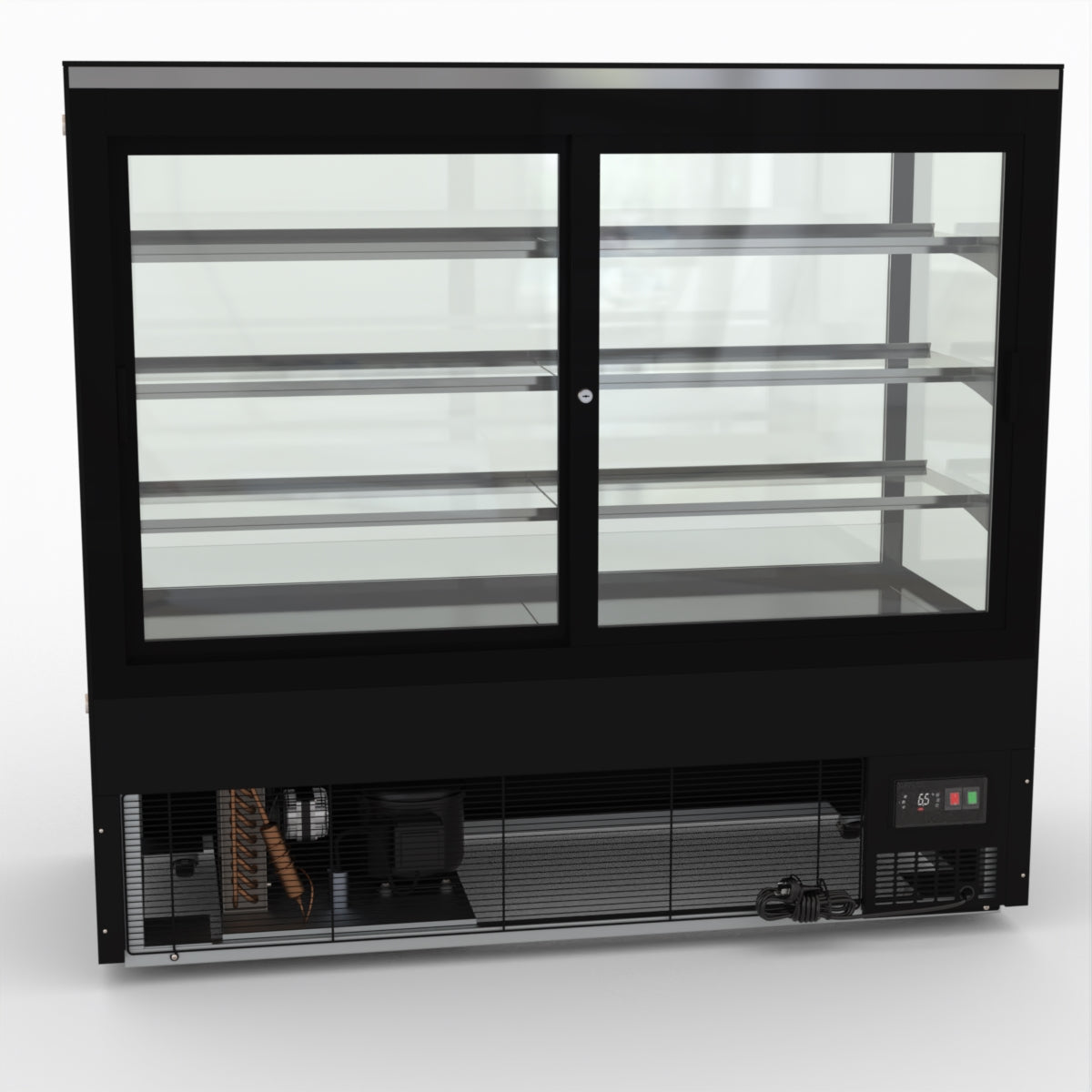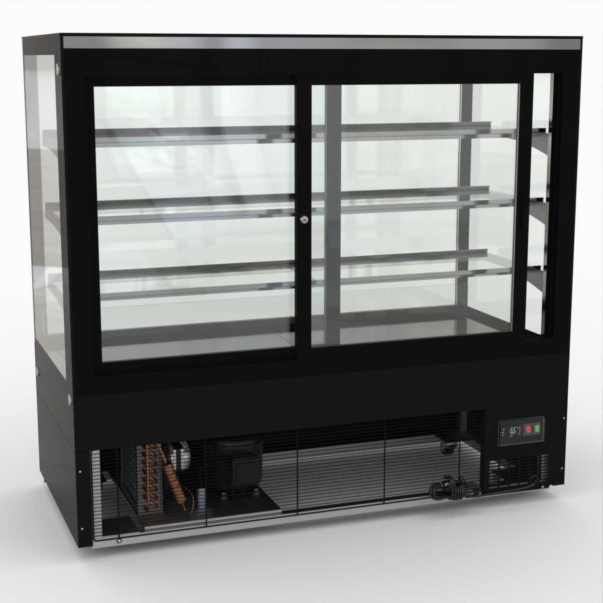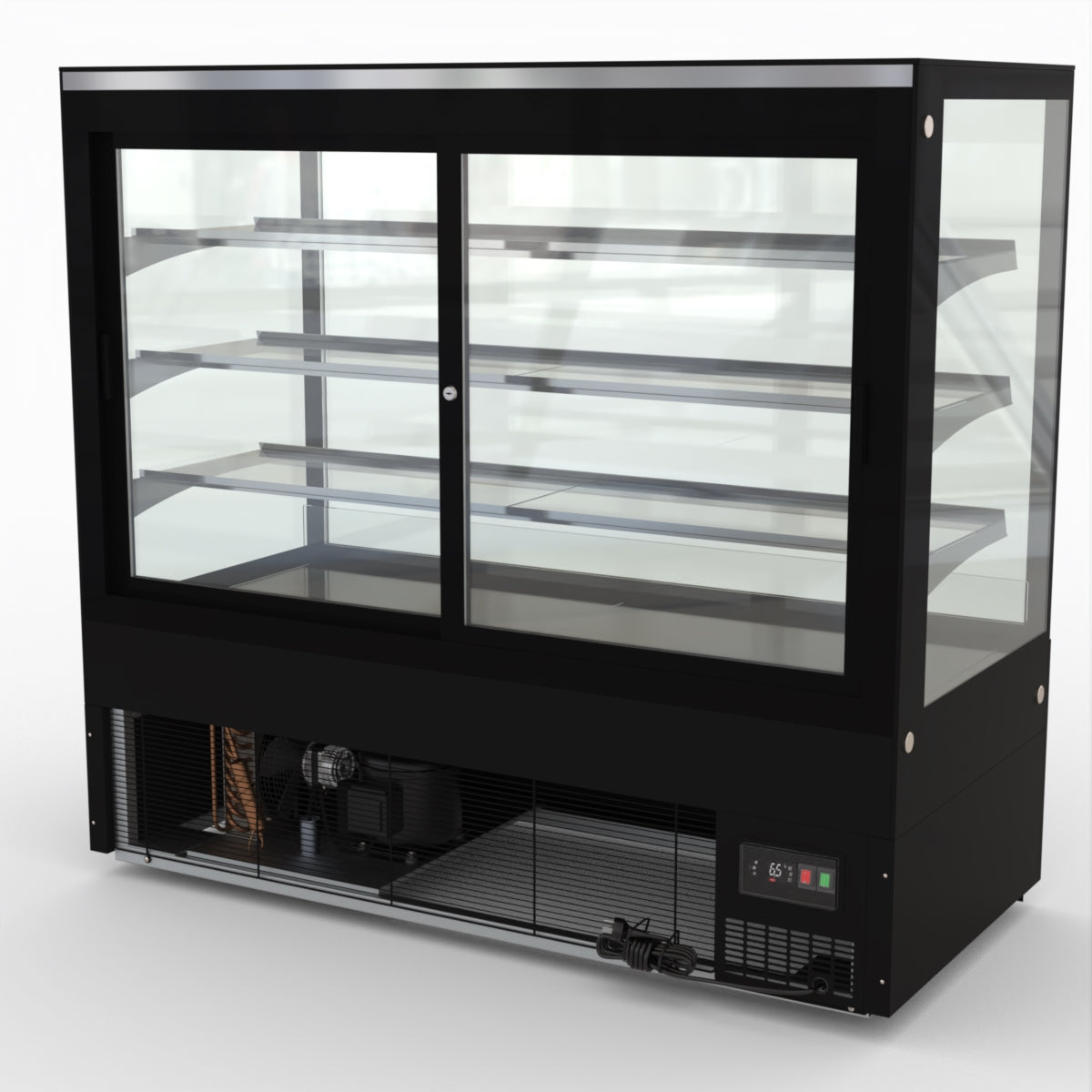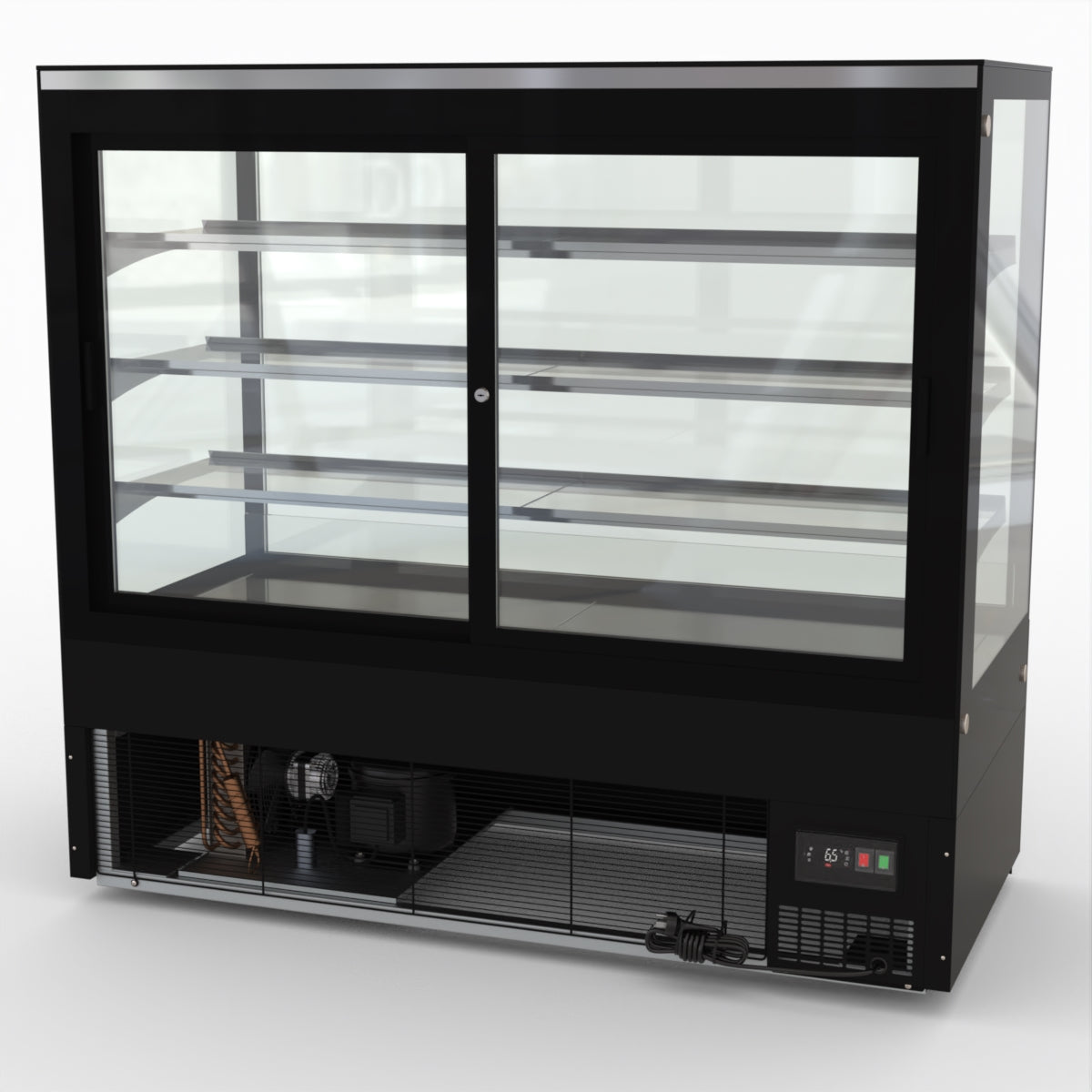 AG Equipment’s 1500mm, 506 Litre black base food display fridge will look great in your cafe, bar, club or restaurant. With four levels of display storage, each individually lit with brilliant LED lighting, and fog-free glass, your food and other refrigerated products will always look their best. With twin rear doors for easy access, and fully adjustable frosted glass shelving our food display will be a convenient and quality addition to your business.