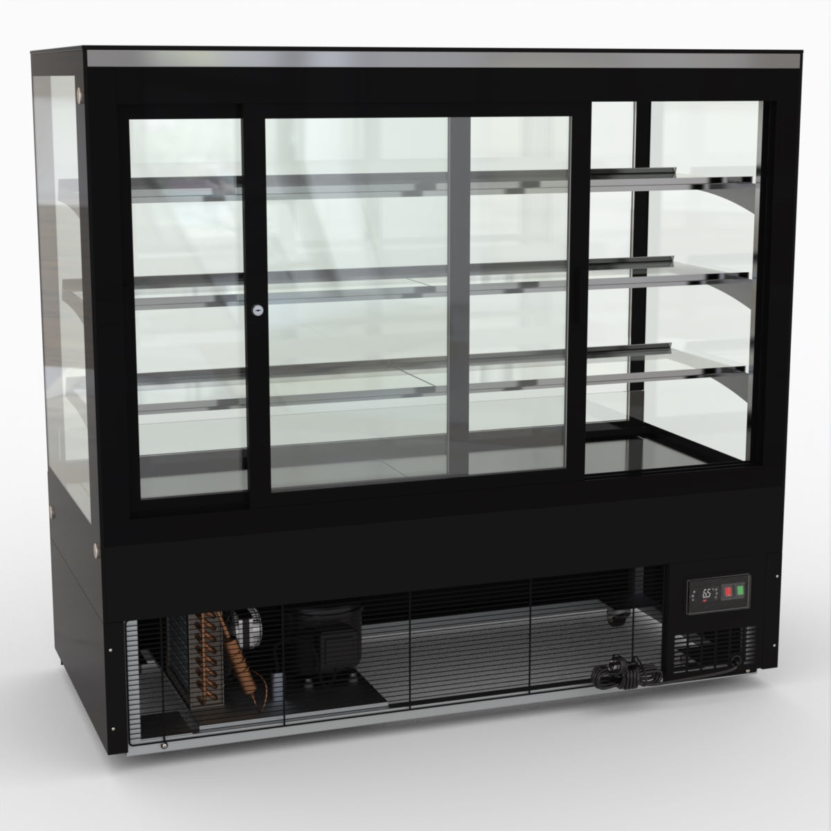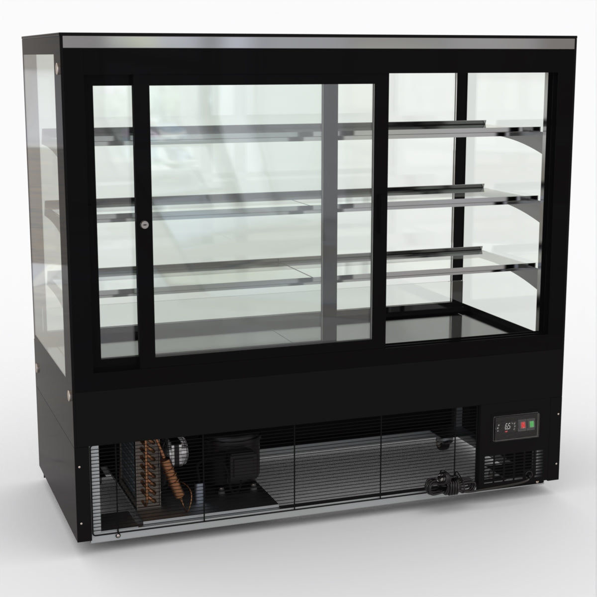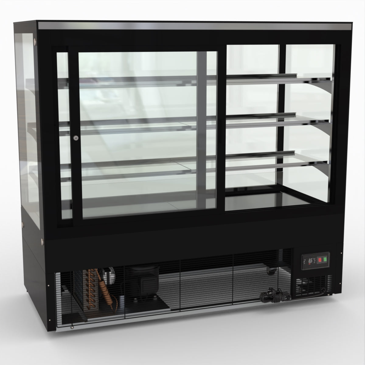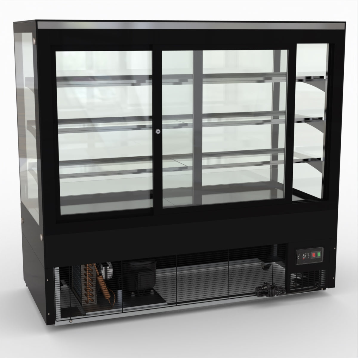 AG Equipment’s 1500mm, 506 Litre black base food display fridge will look great in your cafe, bar, club or restaurant. With four levels of display storage, each individually lit with brilliant LED lighting, and fog-free glass, your food and other refrigerated products will always look their best. With twin rear doors for easy access, and fully adjustable frosted glass shelving our food display will be a convenient and quality addition to your business.