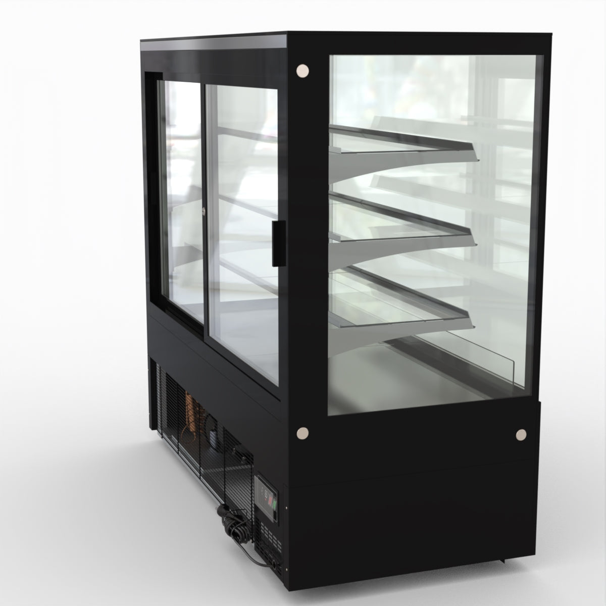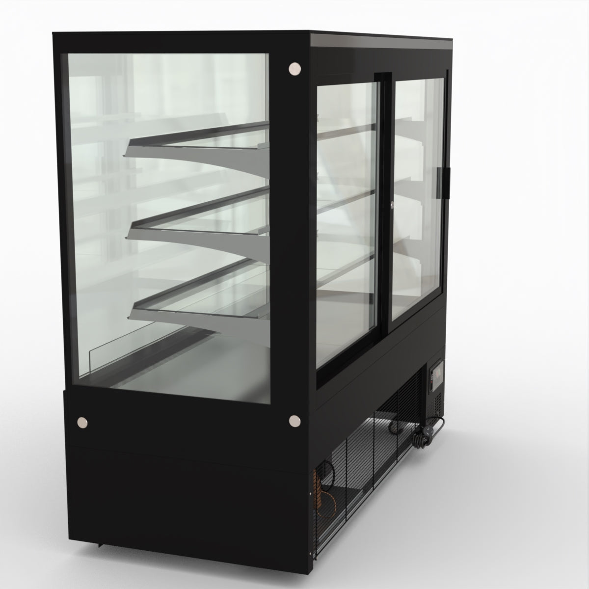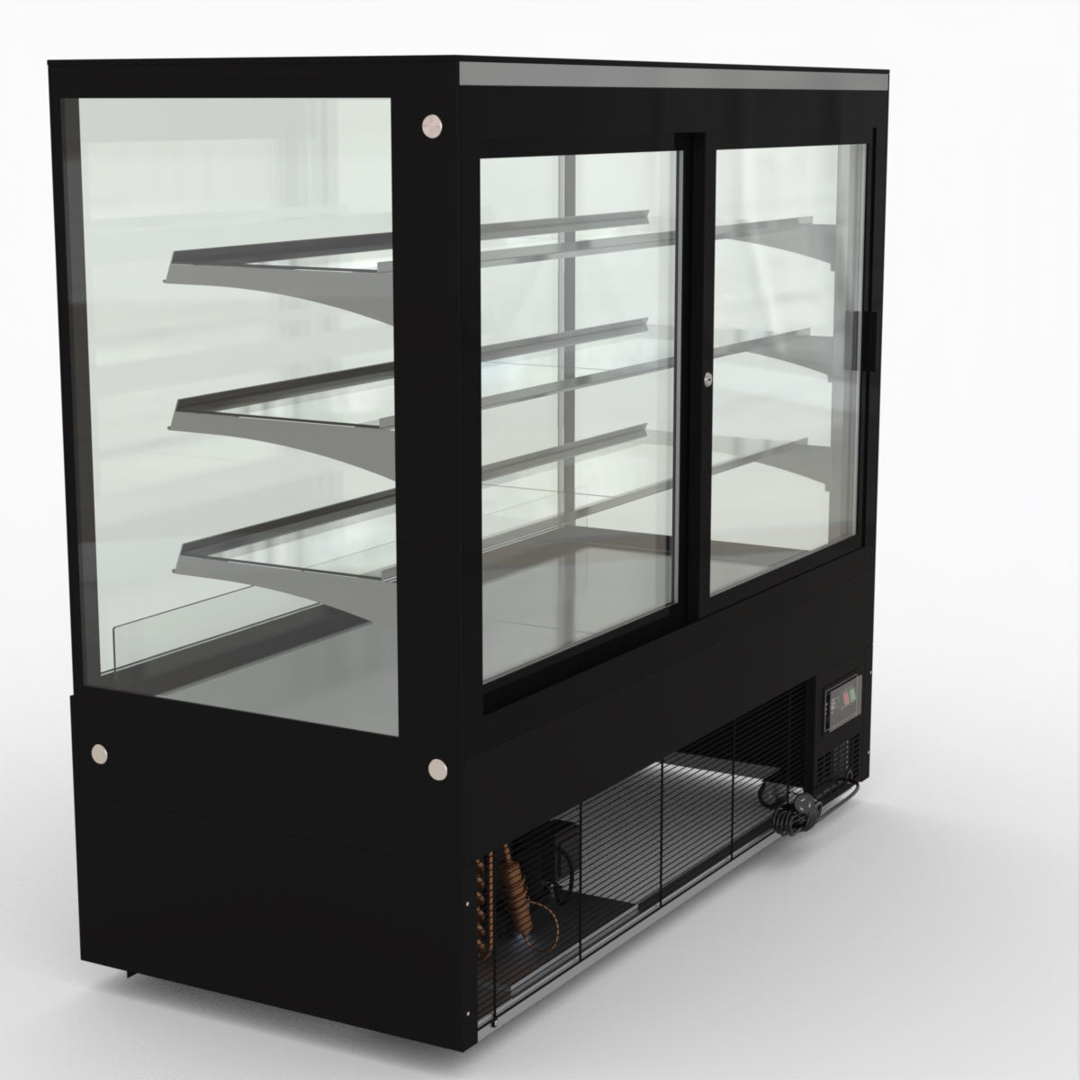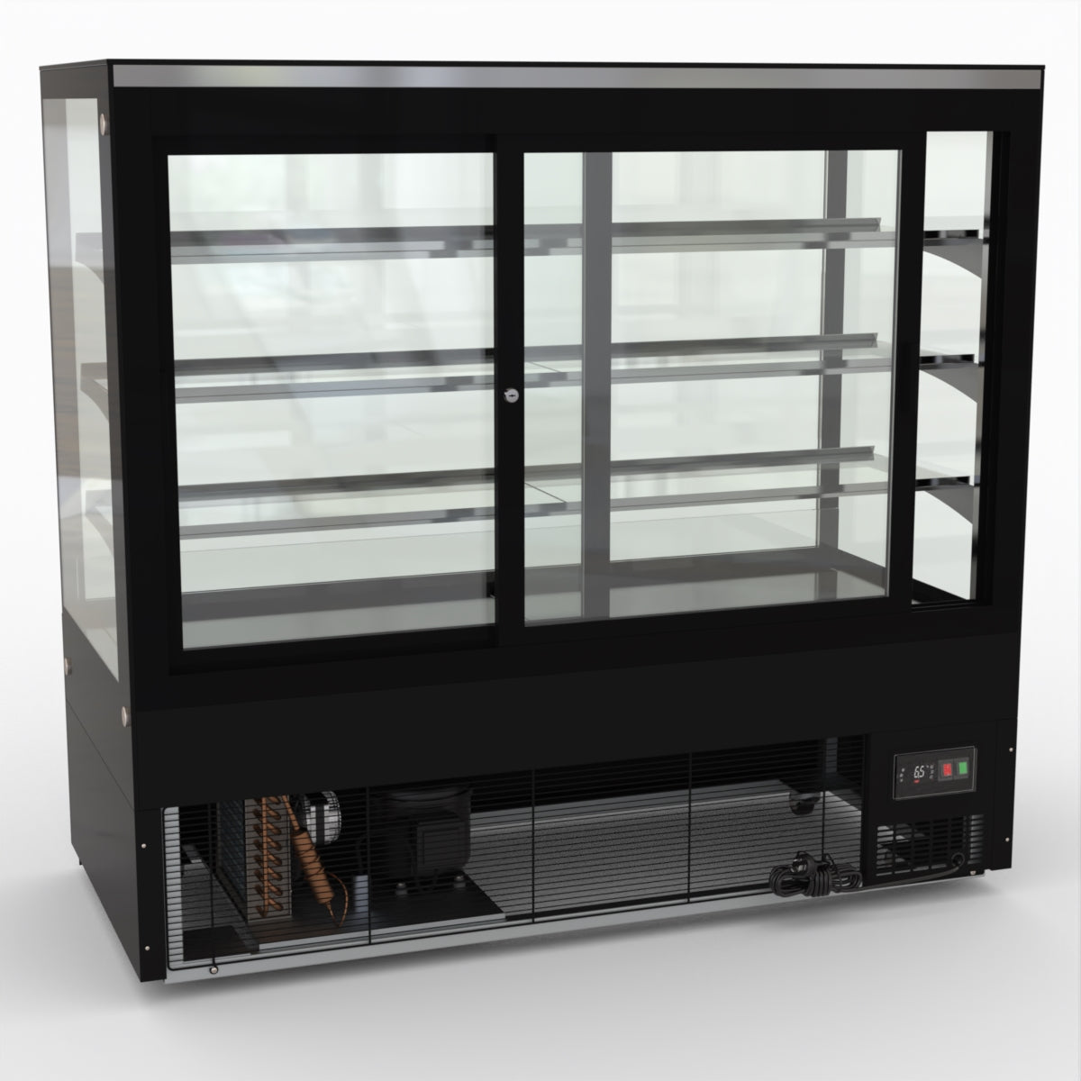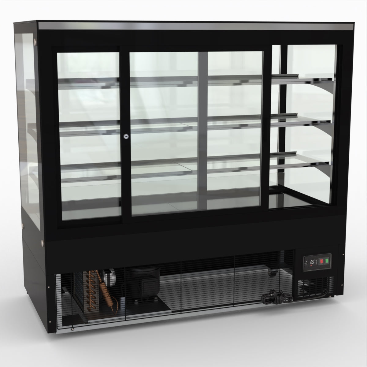 AG Equipment’s 1500mm, 506 Litre black base food display fridge will look great in your cafe, bar, club or restaurant. With four levels of display storage, each individually lit with brilliant LED lighting, and fog-free glass, your food and other refrigerated products will always look their best. With twin rear doors for easy access, and fully adjustable frosted glass shelving our food display will be a convenient and quality addition to your business.