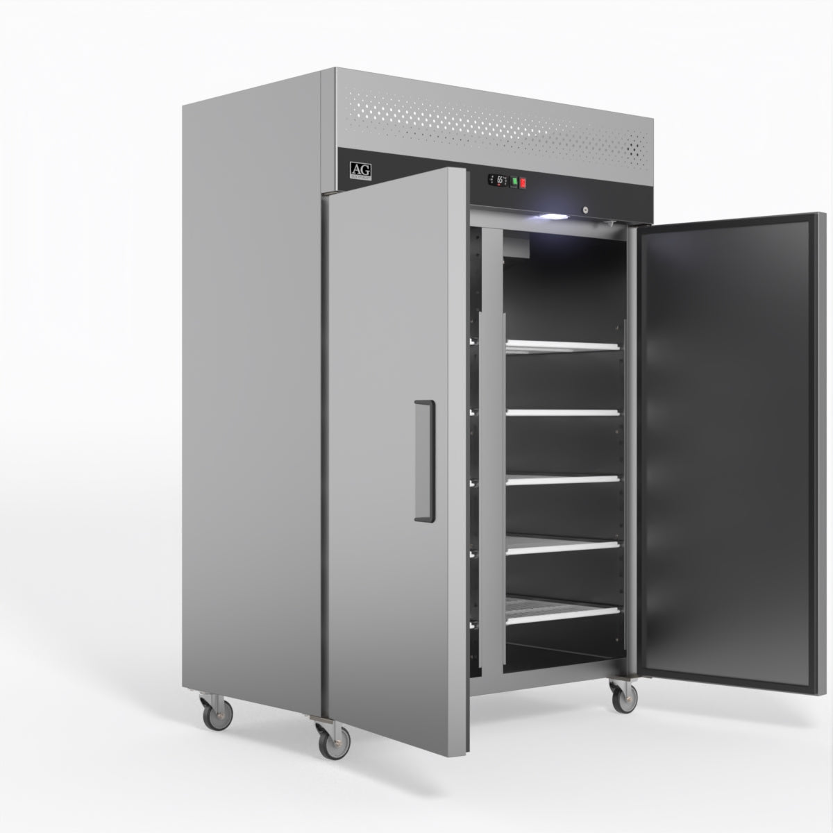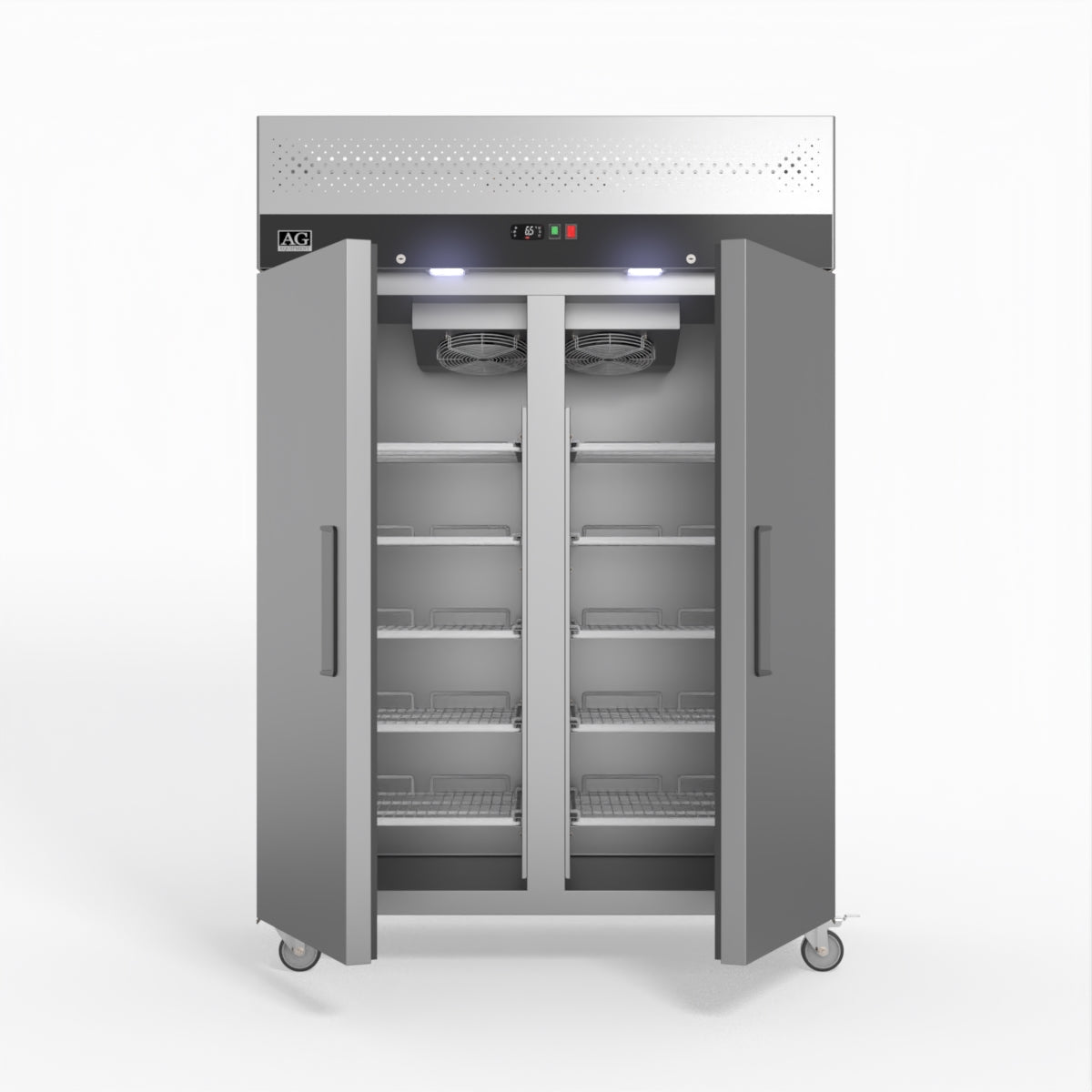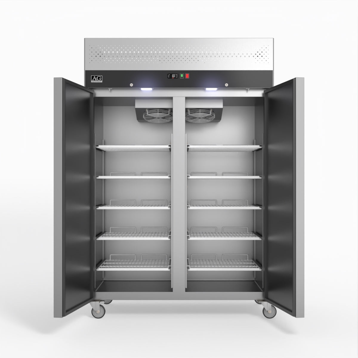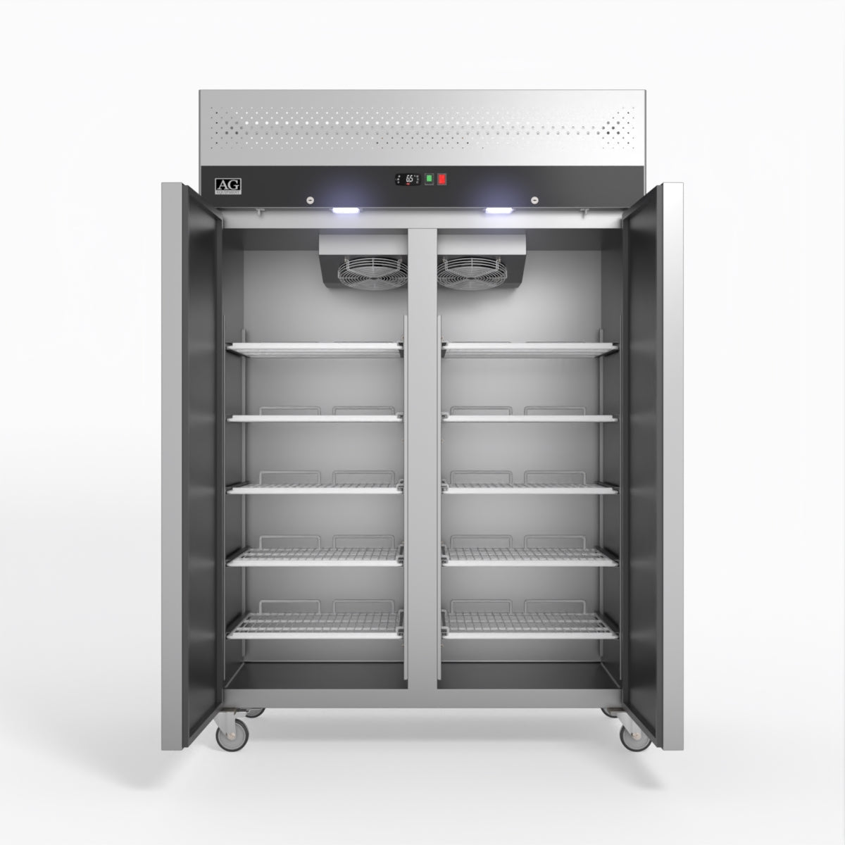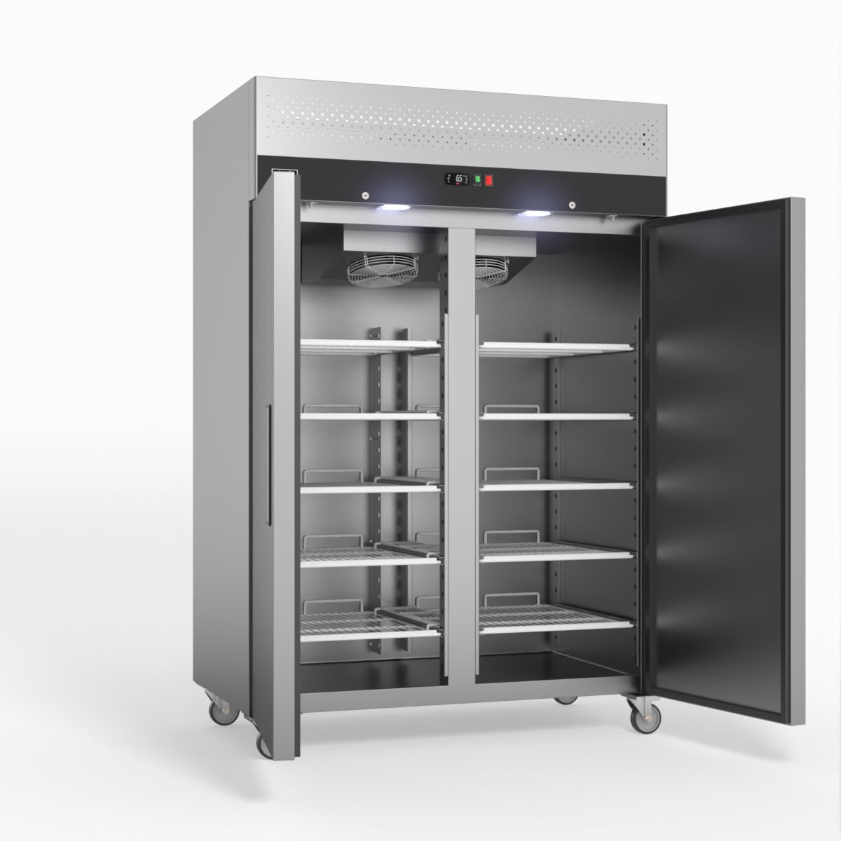 Enhance your kitchen with this freezer's sturdy stainless steel construction, self-closing doors, and practical castor wheels, making it ideal for busy kitchens. With five adjustable shelves per door, you can properly organise your frozen goods while also maximising storage space. Lockable doors also safeguard the safety of your contents, giving you peace of mind after hours. Improve your kitchen operations with this large, secure, and user-friendly freezer today!