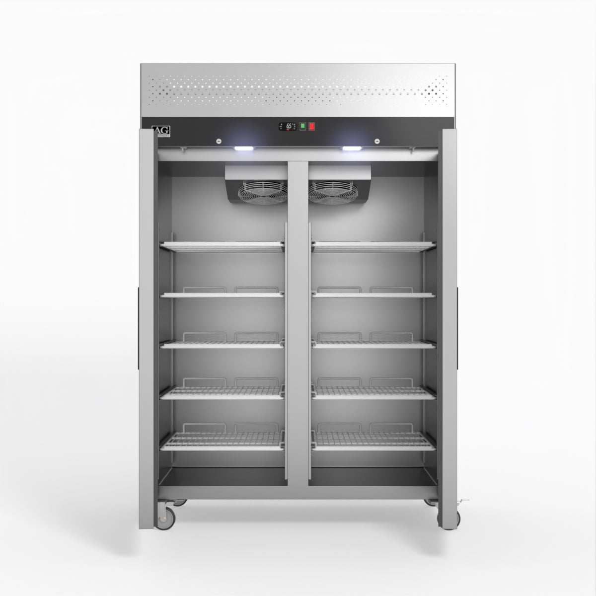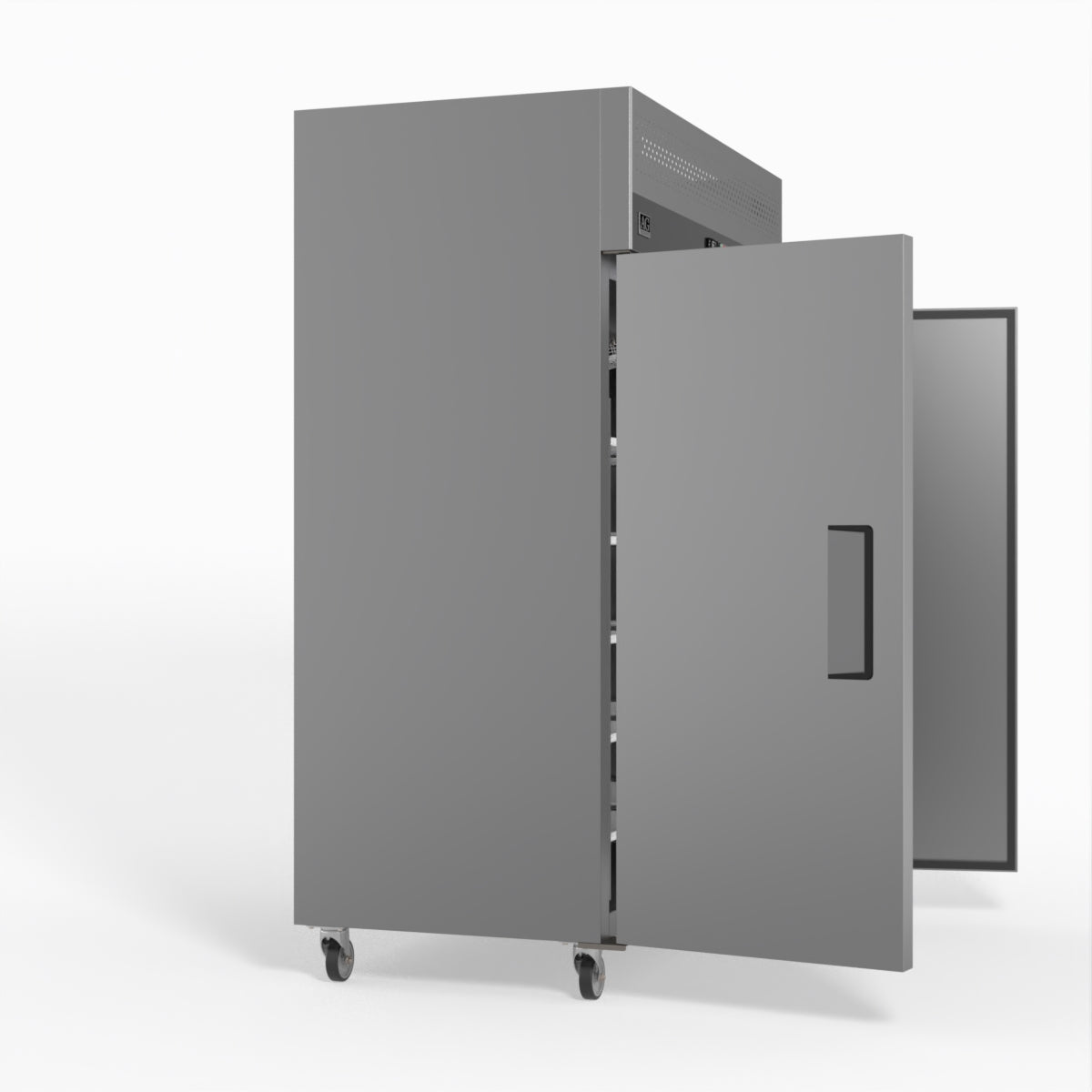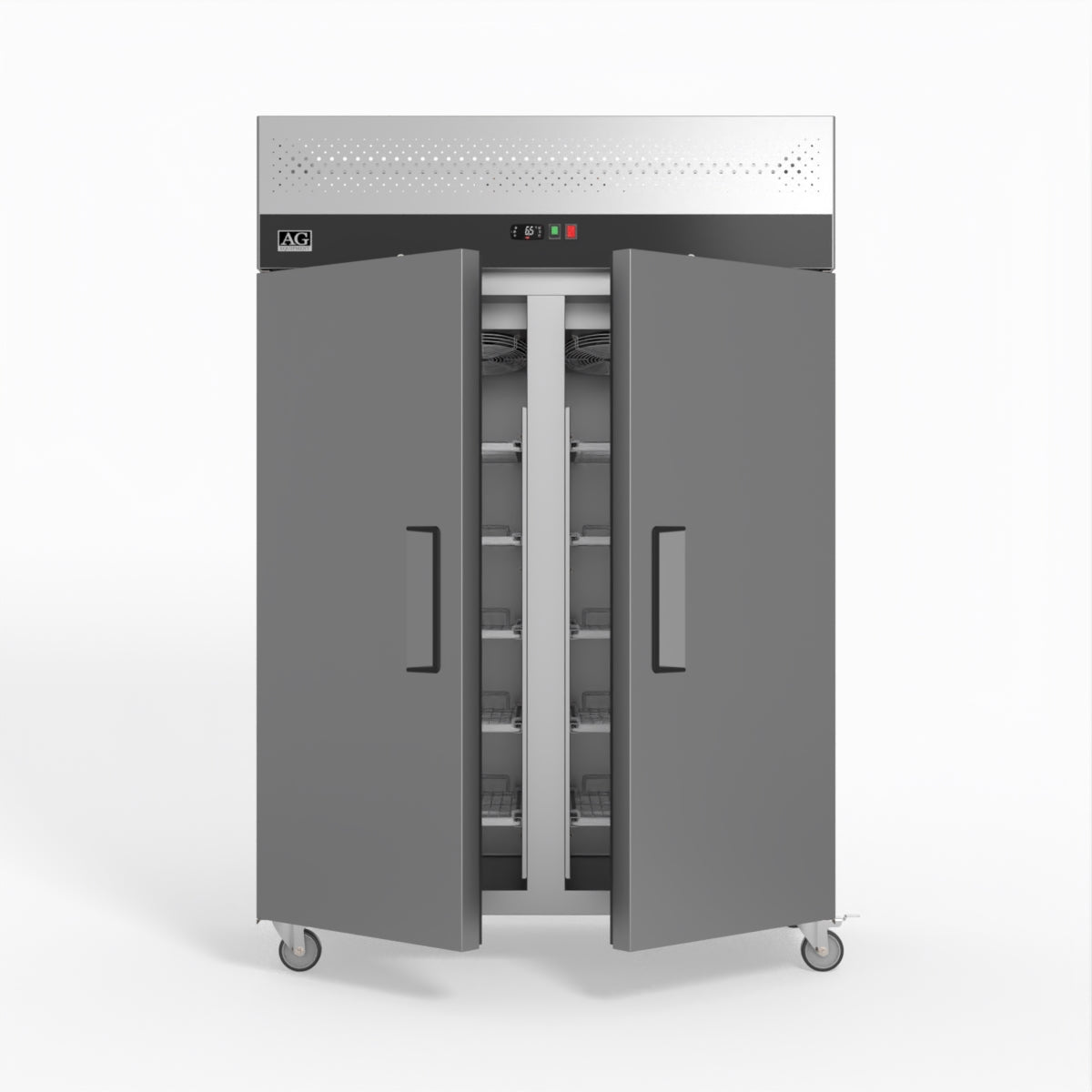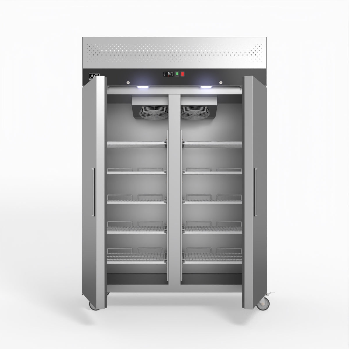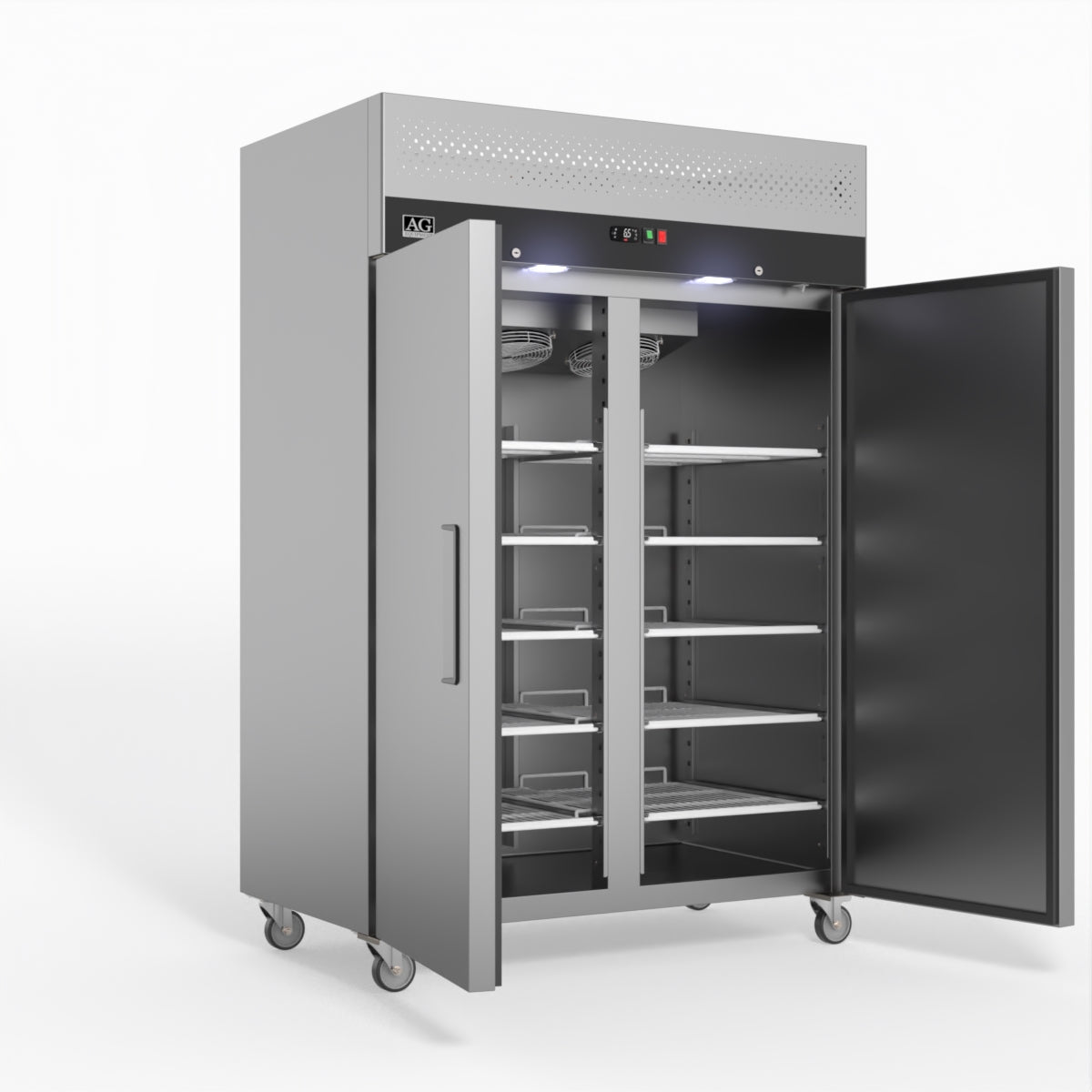 Enhance your kitchen with this freezer's sturdy stainless steel construction, self-closing doors, and practical castor wheels, making it ideal for busy kitchens. With five adjustable shelves per door, you can properly organise your frozen goods while also maximising storage space. Lockable doors also safeguard the safety of your contents, giving you peace of mind after hours. Improve your kitchen operations with this large, secure, and user-friendly freezer today!