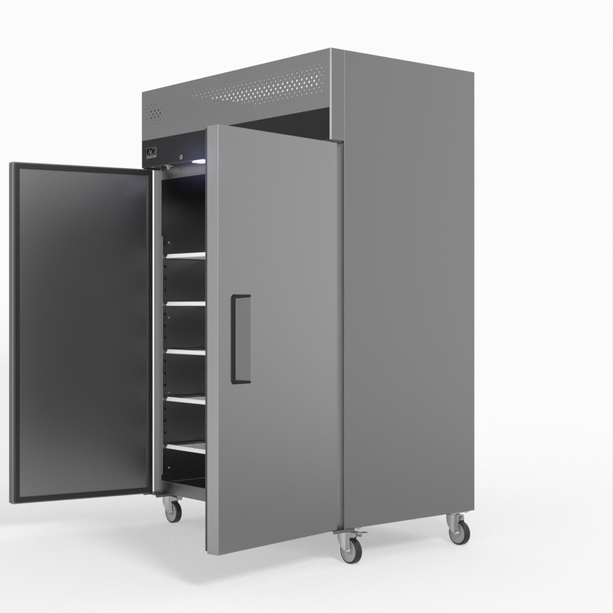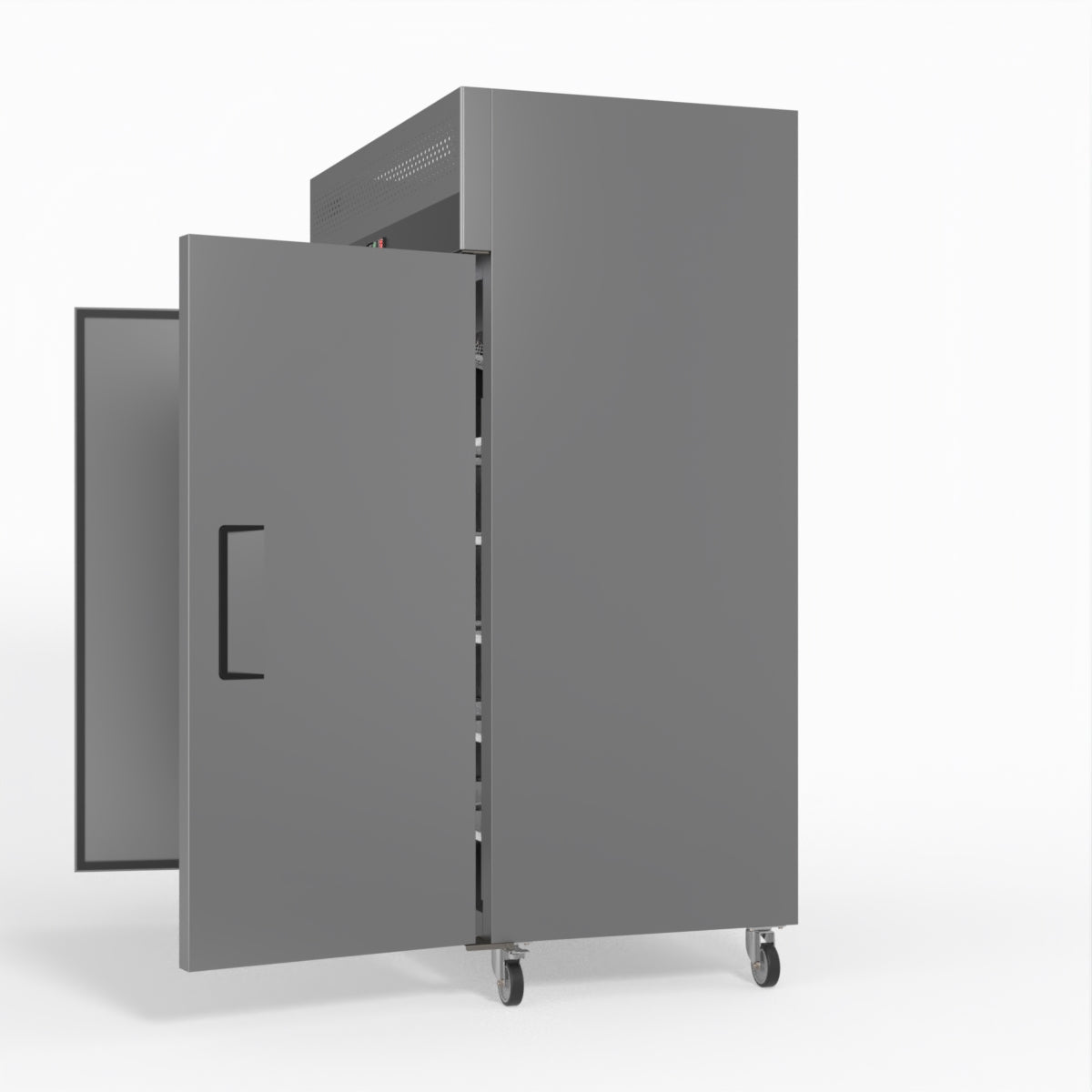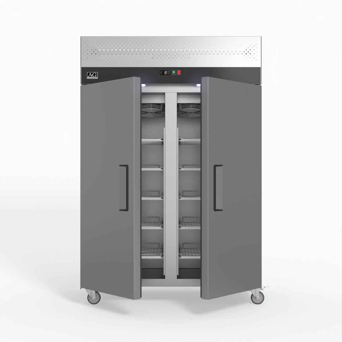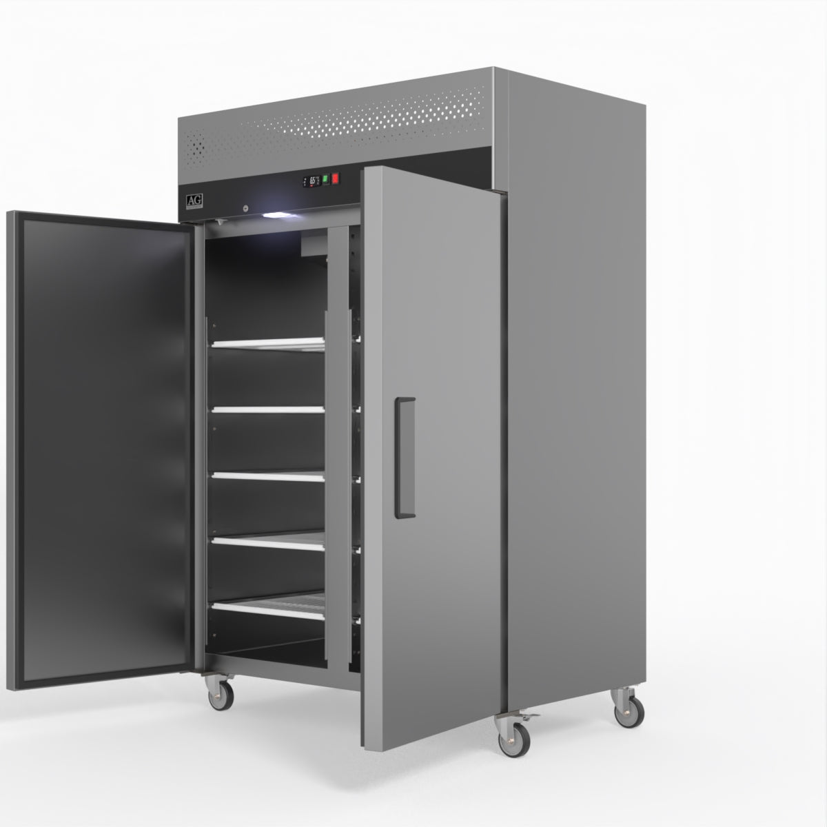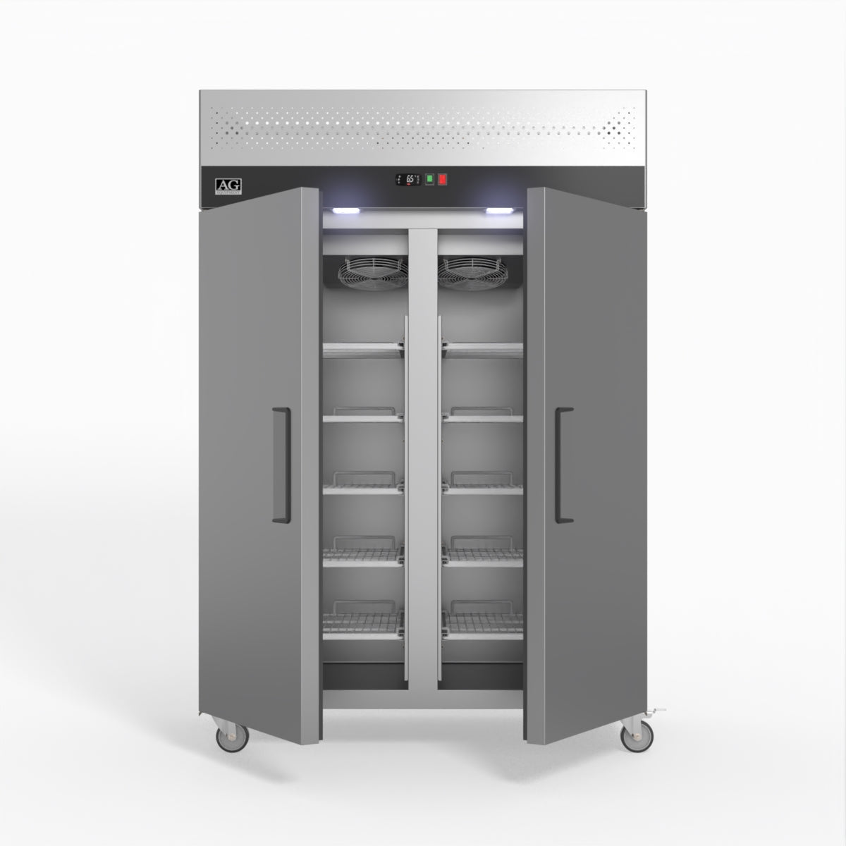 Enhance your kitchen with this freezer's sturdy stainless steel construction, self-closing doors, and practical castor wheels, making it ideal for busy kitchens. With five adjustable shelves per door, you can properly organise your frozen goods while also maximising storage space. Lockable doors also safeguard the safety of your contents, giving you peace of mind after hours. Improve your kitchen operations with this large, secure, and user-friendly freezer today!