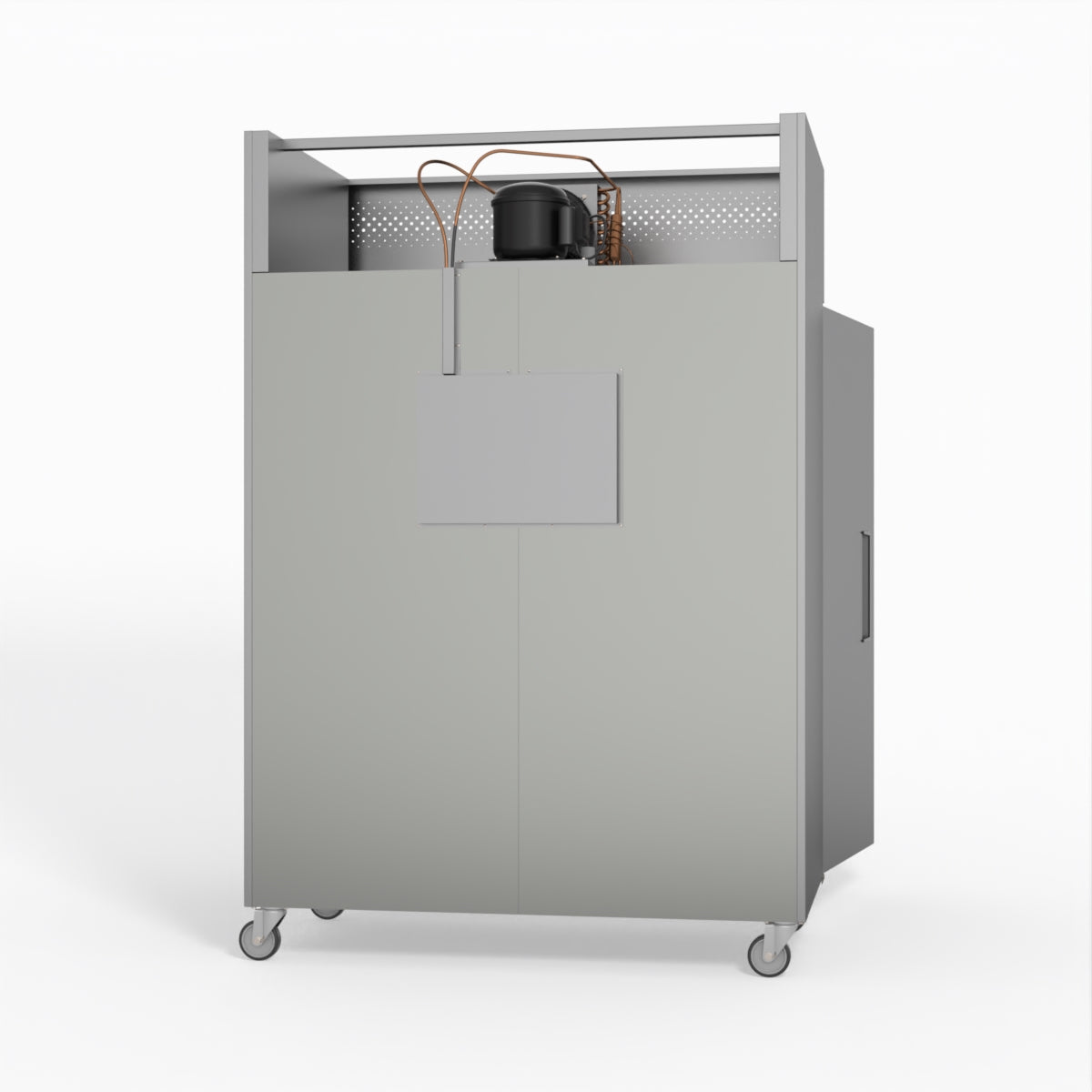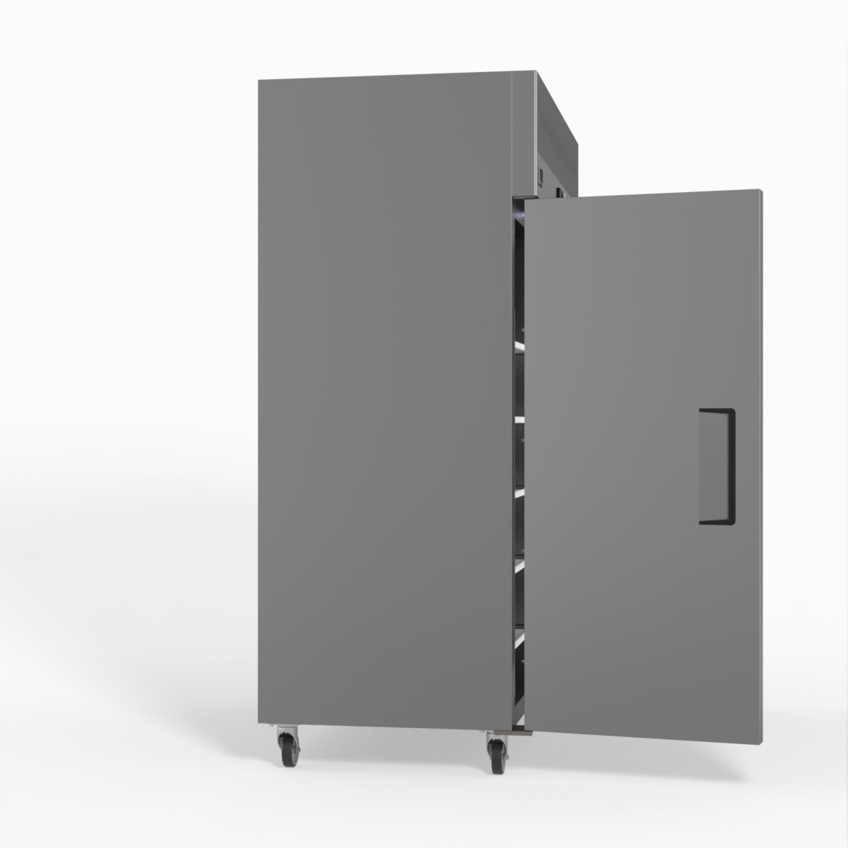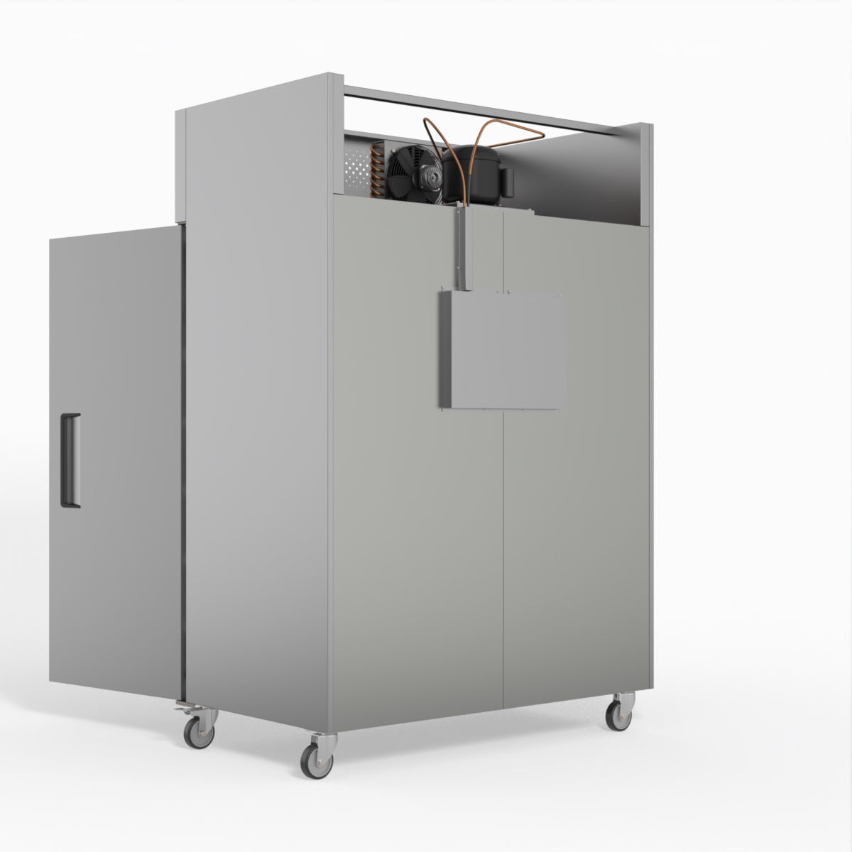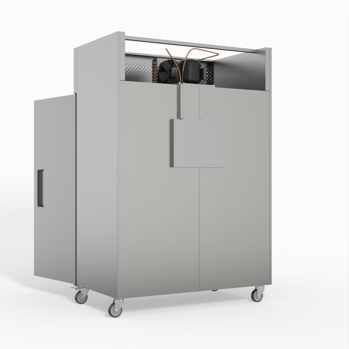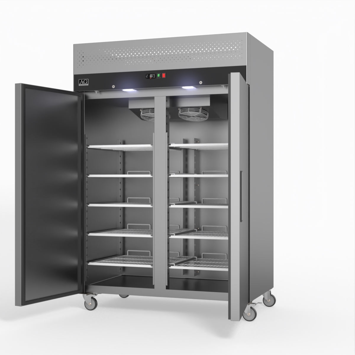 Enhance your kitchen with this freezer's sturdy stainless steel construction, self-closing doors, and practical castor wheels, making it ideal for busy kitchens. With five adjustable shelves per door, you can properly organise your frozen goods while also maximising storage space. Lockable doors also safeguard the safety of your contents, giving you peace of mind after hours. Improve your kitchen operations with this large, secure, and user-friendly freezer today!