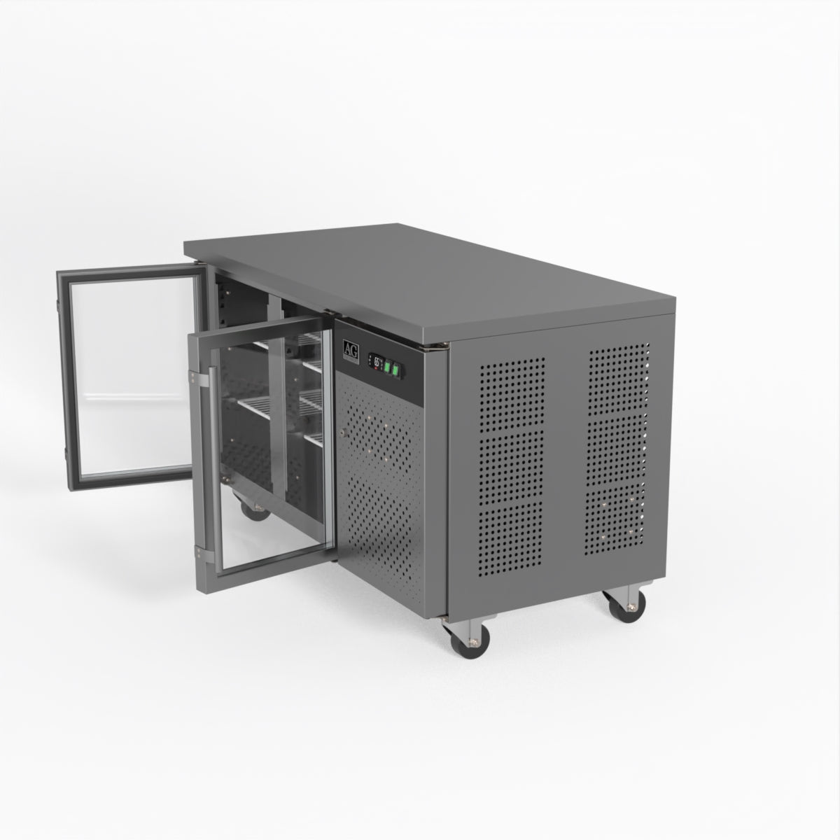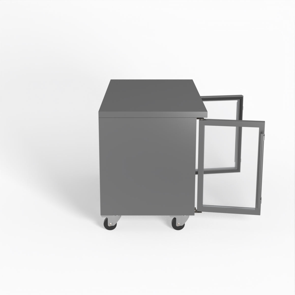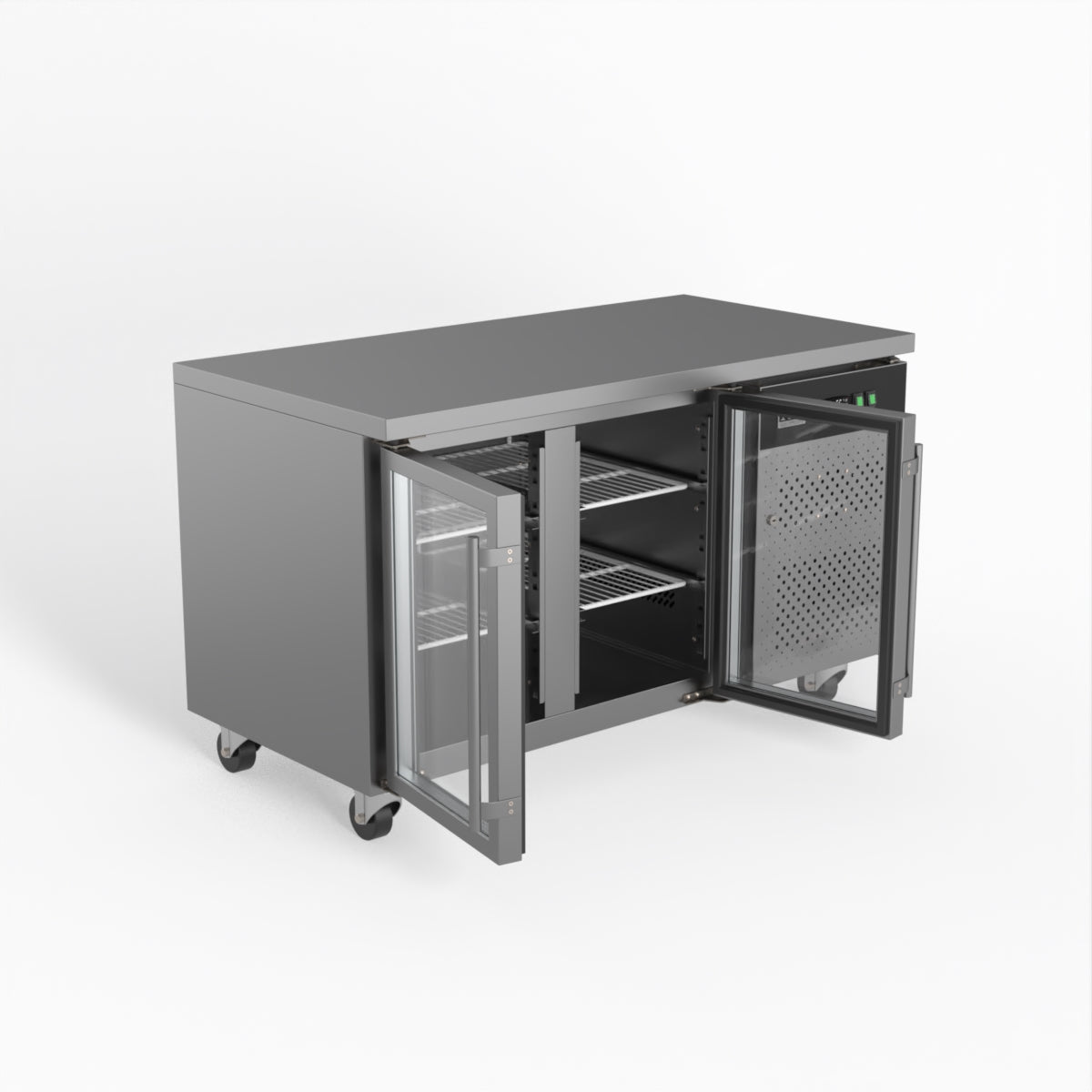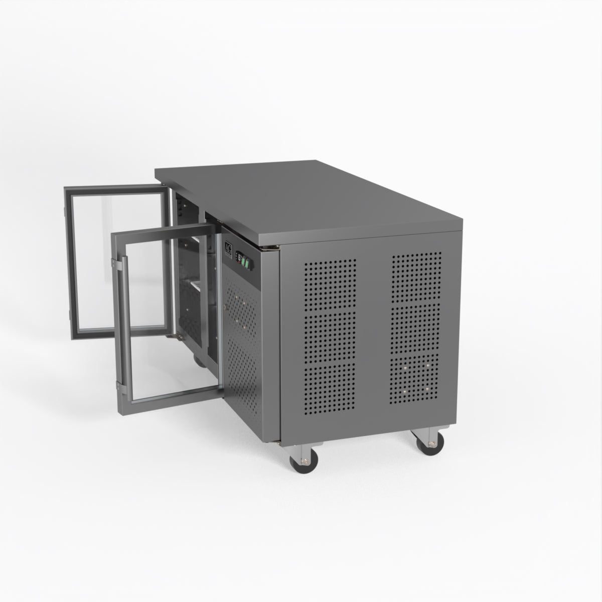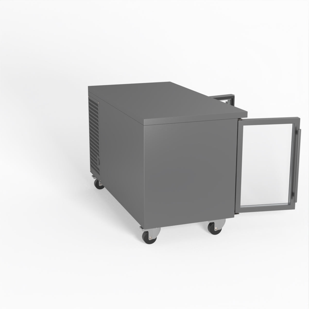 This fridge is made of sturdy stainless steel and can manage ambient temperatures of up to 43°C. Ideal for restaurants, cafes, and bars, the self-closing glass doors and modern Carel iJF electronic controls enable accurate temperature regulation even in high-pressure conditions. This unit, with fan-forced ventilated cooling and double-glazed glass doors with GN1/1-sized shelves, can hold up to four complete Gastronome 1/1 trays or pans. Improve your kitchen's efficiency instantly!
