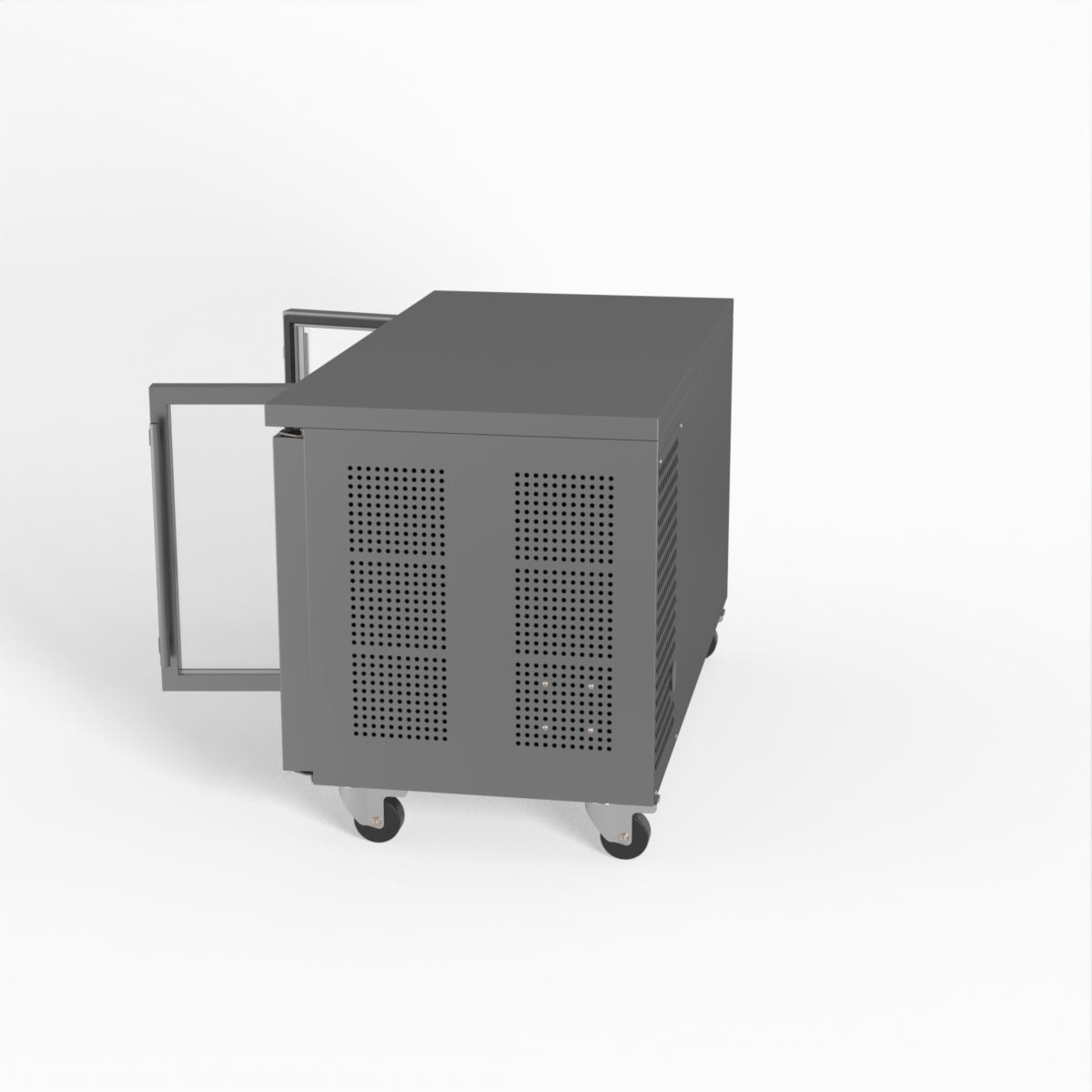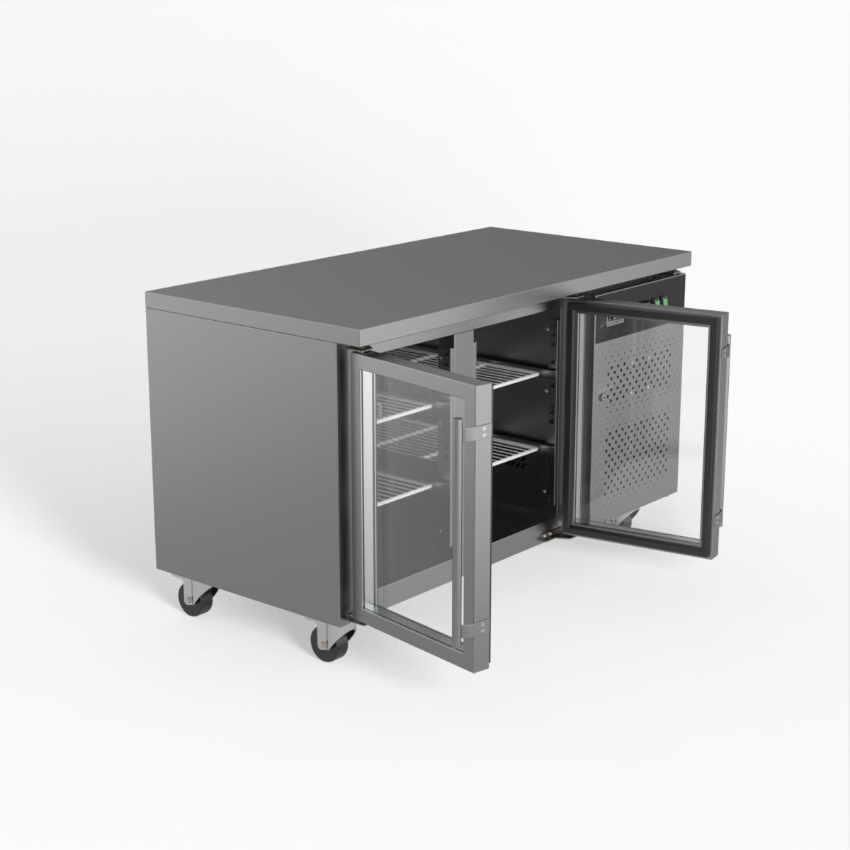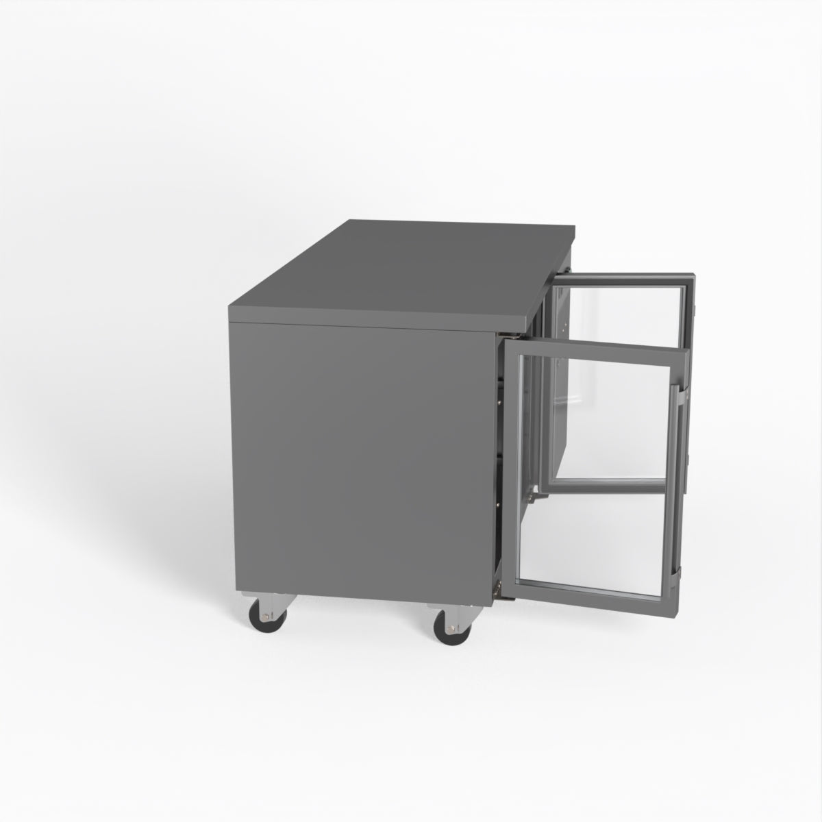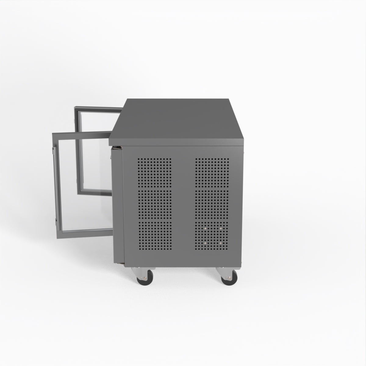 This fridge is made of sturdy stainless steel and can manage ambient temperatures of up to 43°C. Ideal for restaurants, cafes, and bars, the self-closing glass doors and modern Carel iJF electronic controls enable accurate temperature regulation even in high-pressure conditions. This unit, with fan-forced ventilated cooling and double-glazed glass doors with GN1/1-sized shelves, can hold up to four complete Gastronome 1/1 trays or pans. Improve your kitchen's efficiency instantly!