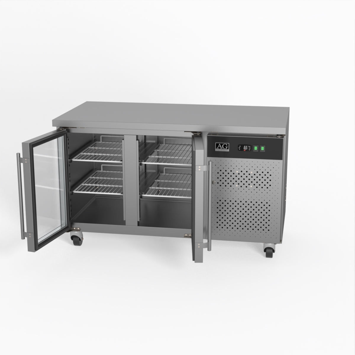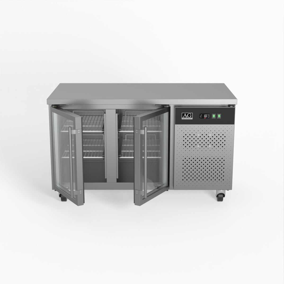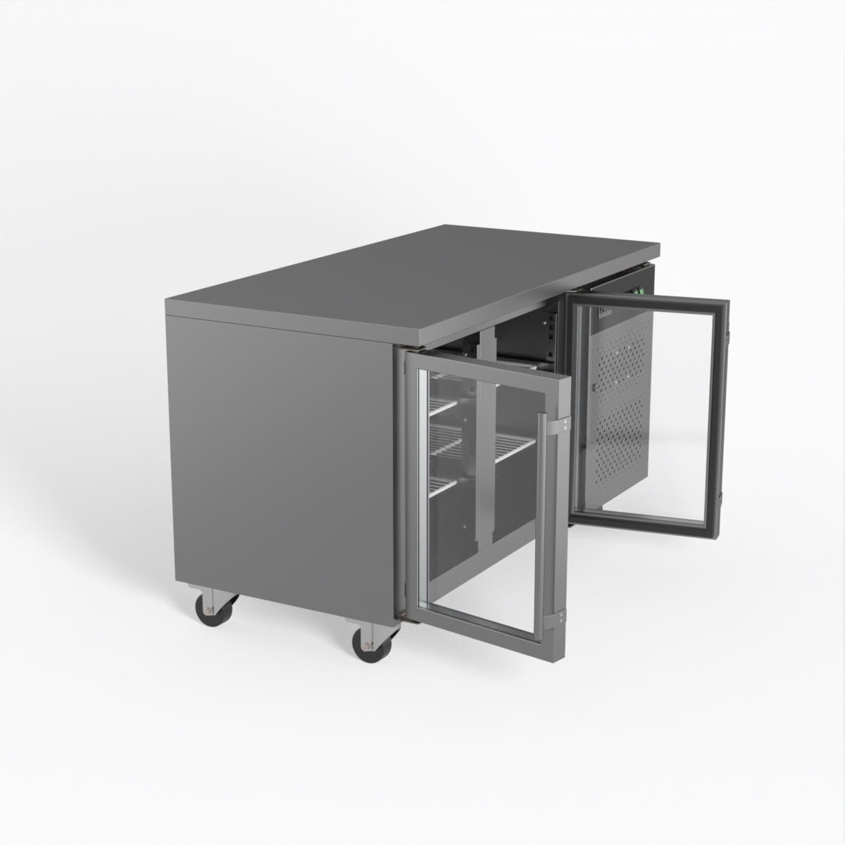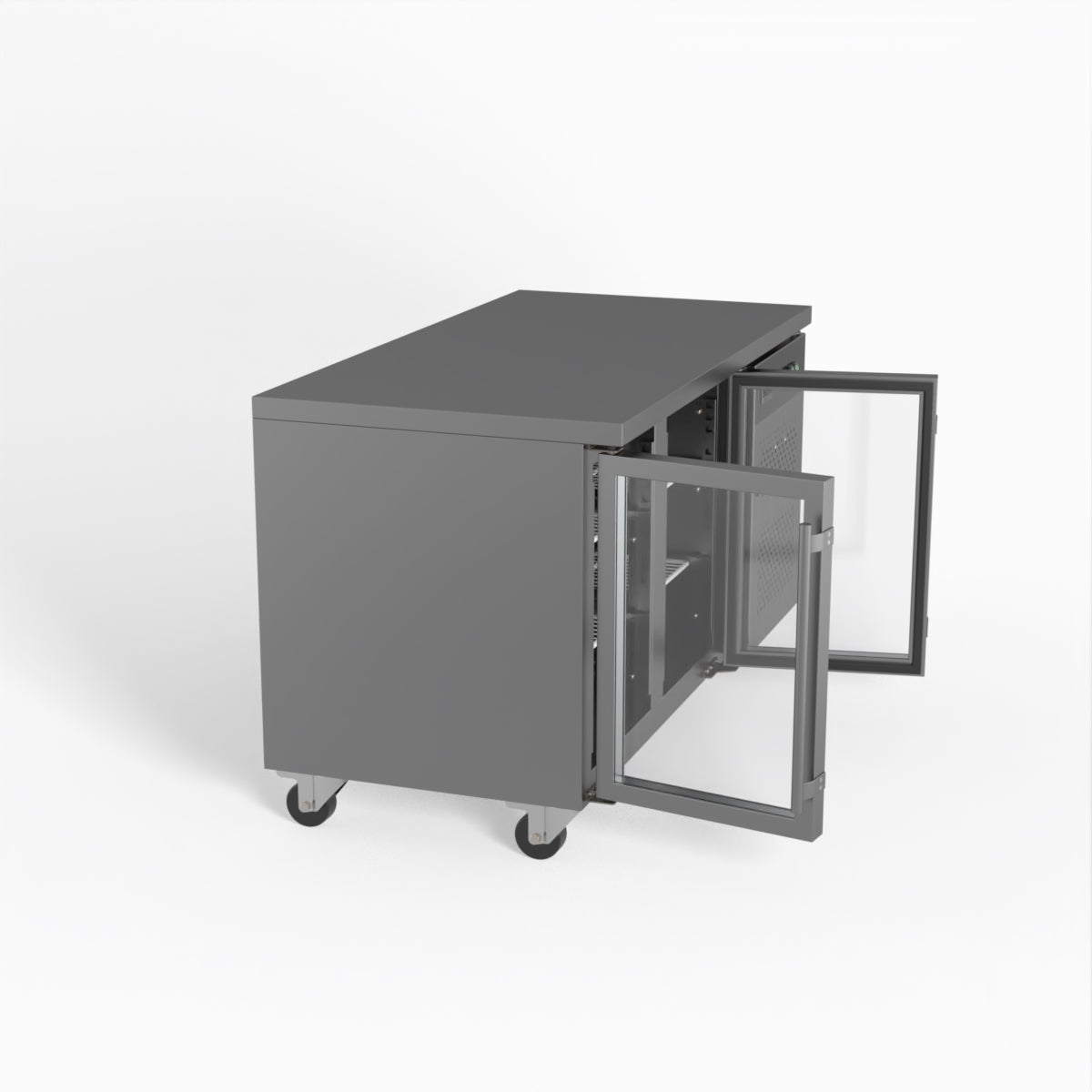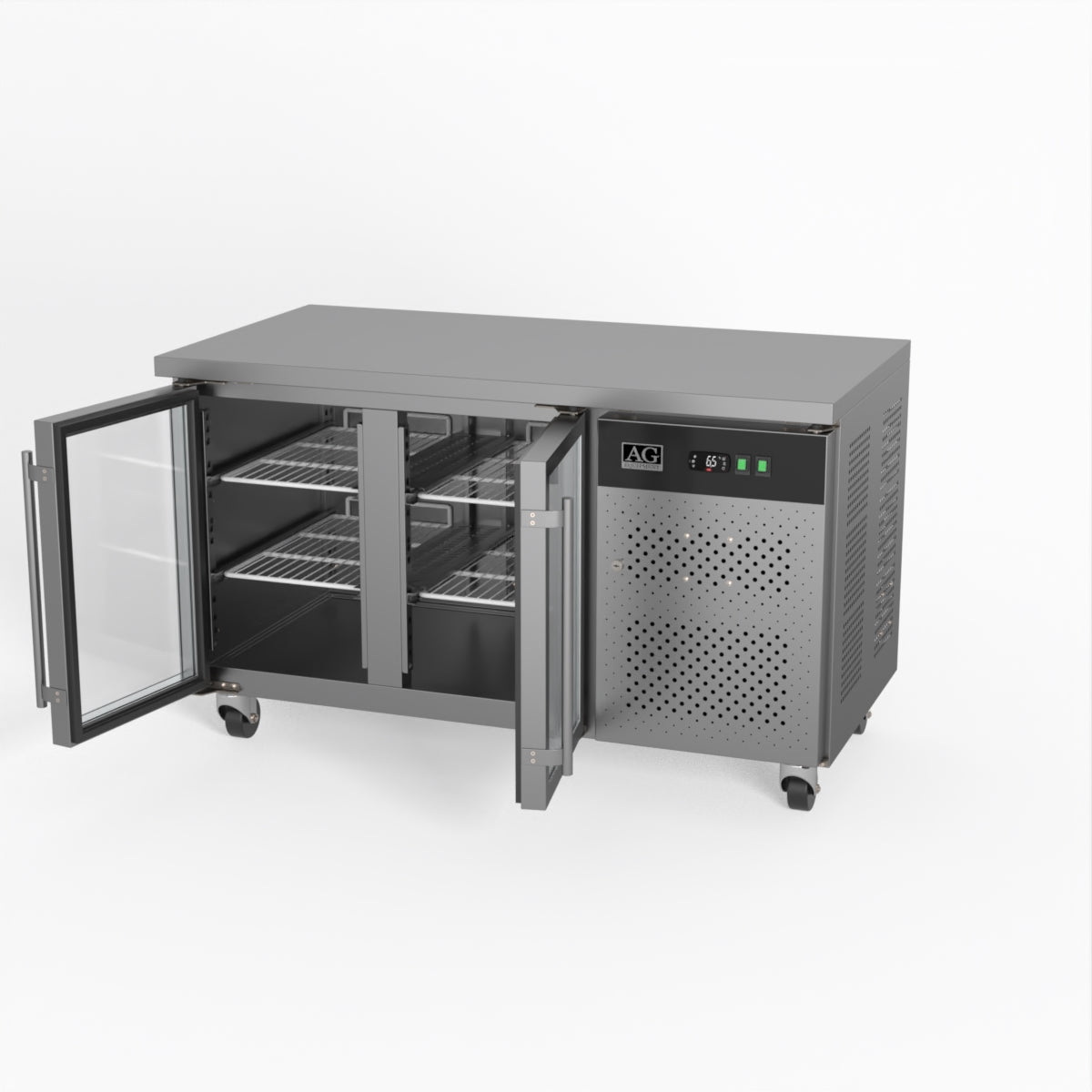 This fridge is made of sturdy stainless steel and can manage ambient temperatures of up to 43°C. Ideal for restaurants, cafes, and bars, the self-closing glass doors and modern Carel iJF electronic controls enable accurate temperature regulation even in high-pressure conditions. This unit, with fan-forced ventilated cooling and double-glazed glass doors with GN1/1-sized shelves, can hold up to four complete Gastronome 1/1 trays or pans. Improve your kitchen's efficiency instantly!
