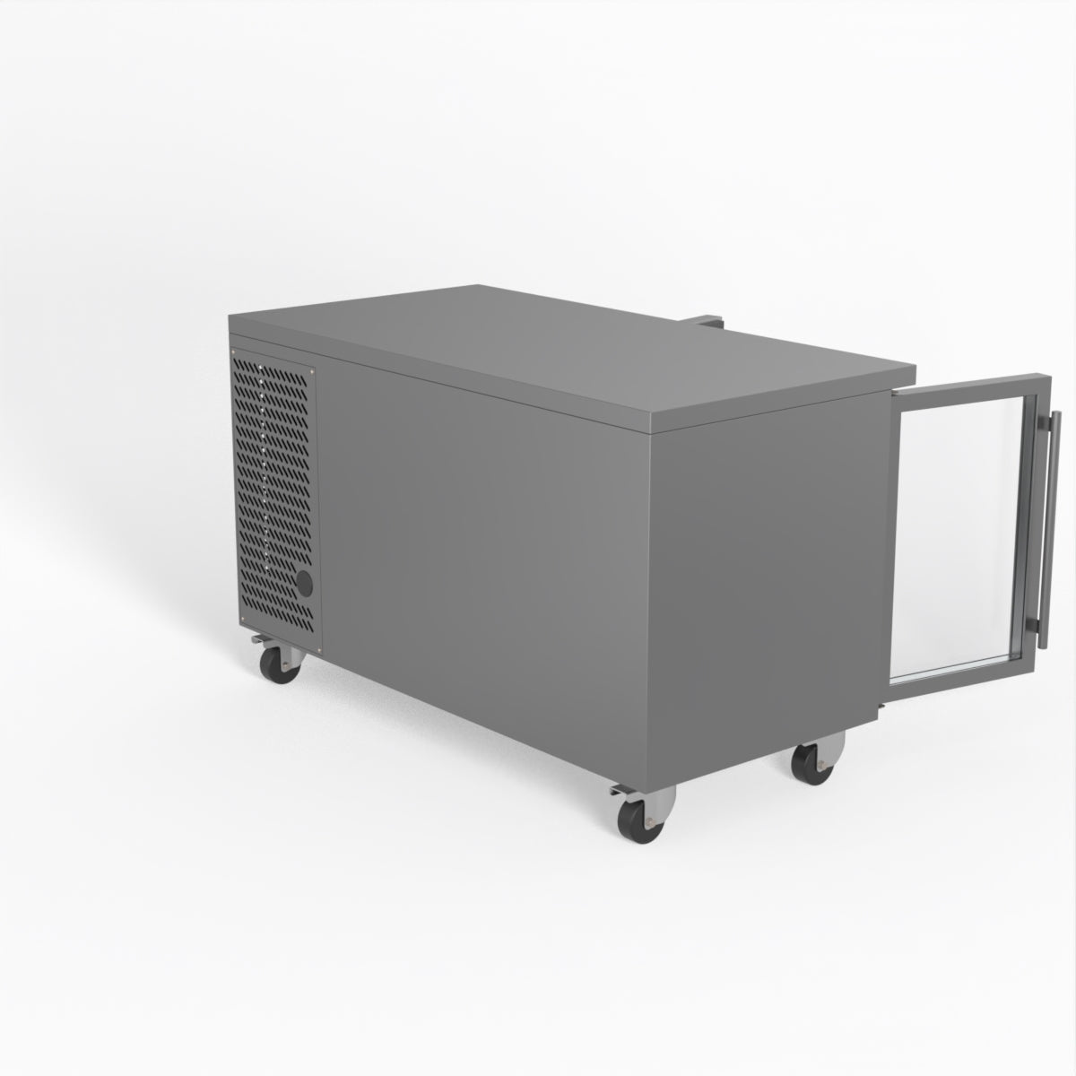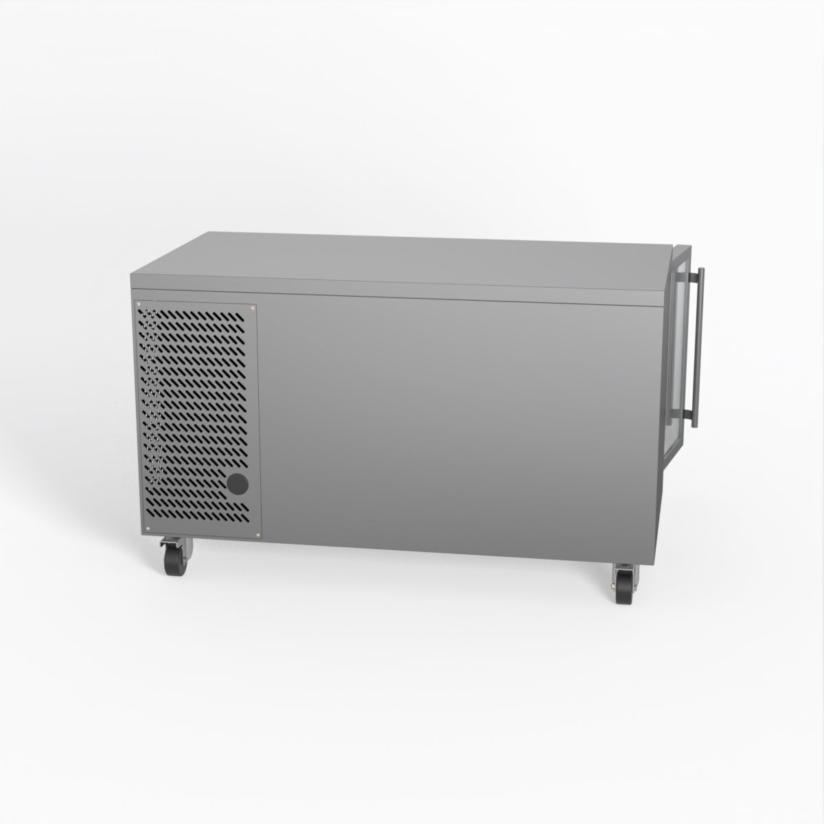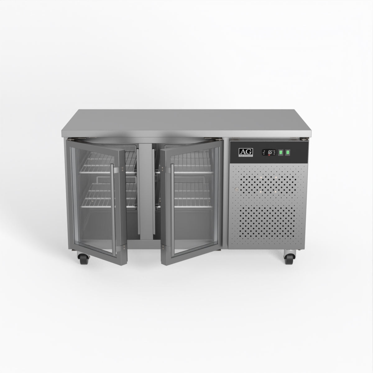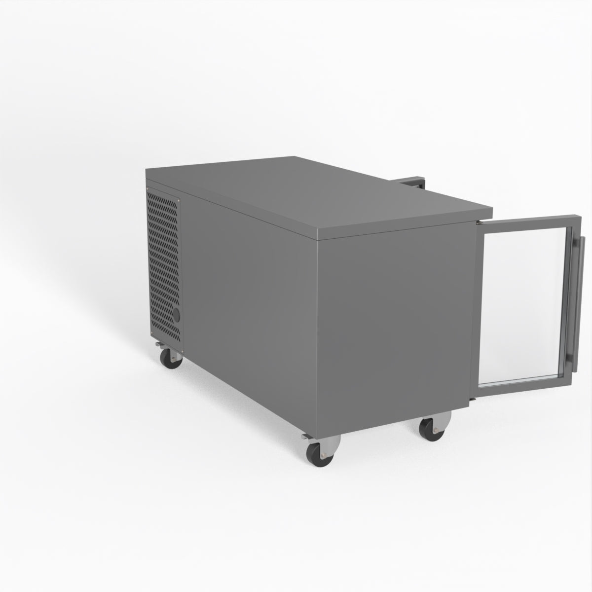 This fridge is made of sturdy stainless steel and can manage ambient temperatures of up to 43°C. Ideal for restaurants, cafes, and bars, the self-closing glass doors and modern Carel iJF electronic controls enable accurate temperature regulation even in high-pressure conditions. This unit, with fan-forced ventilated cooling and double-glazed glass doors with GN1/1-sized shelves, can hold up to four complete Gastronome 1/1 trays or pans. Improve your kitchen's efficiency instantly!