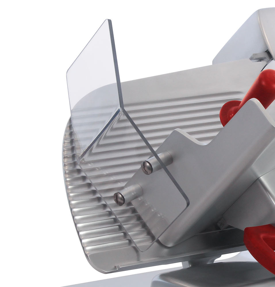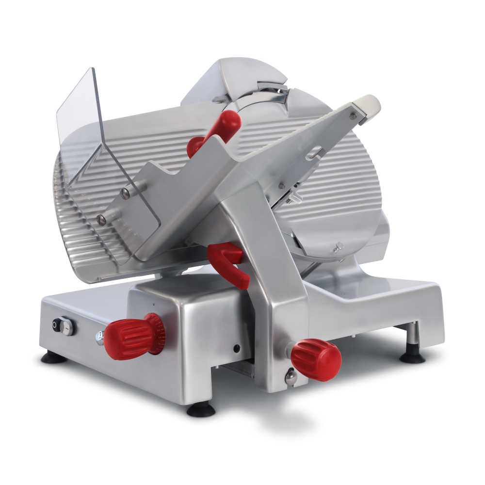 The gravity feed gear-driven slicer has been designed to effortlessly handle heavy loads like cheese, bacon and meat that might cause slipping of a belt-driven machine.